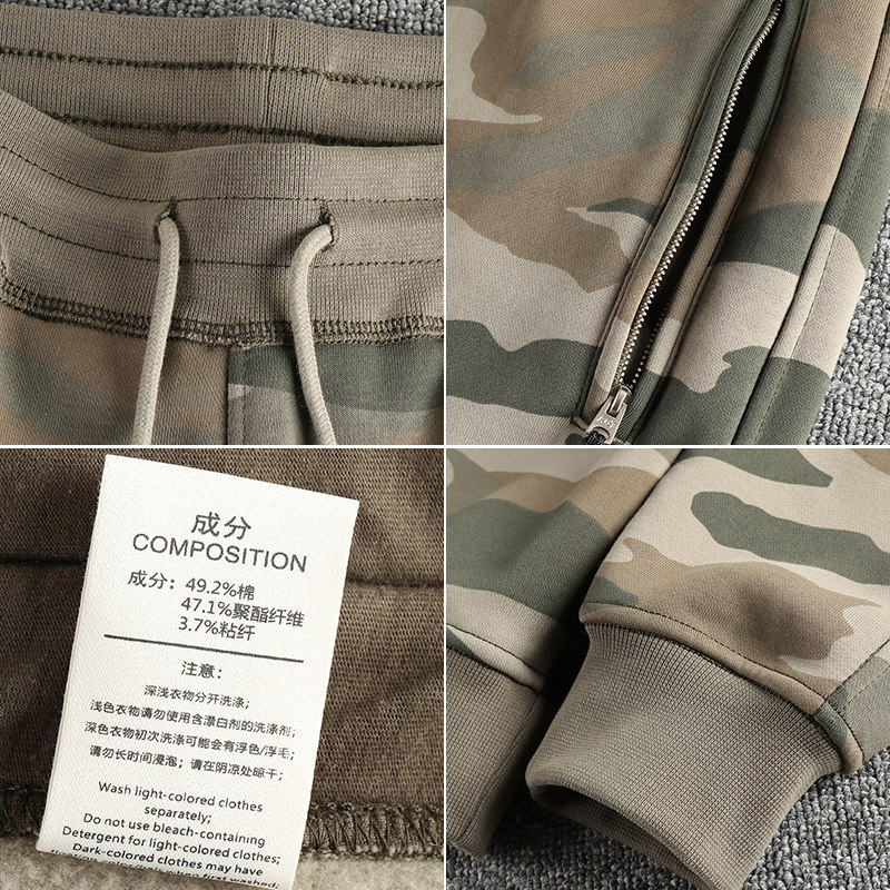 冬季美式硬朗潮流迷彩重磅加绒加厚男款卫裤 宽松小脚休闲运动裤