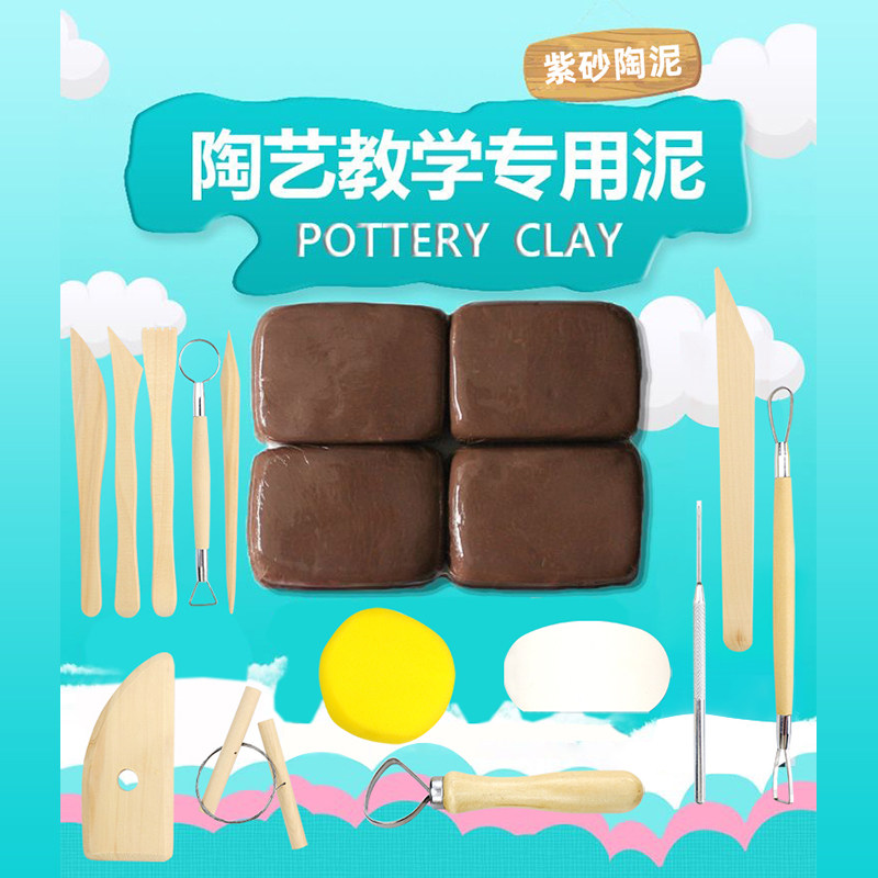 紫砂泥儿童手工软陶泥学生泥绘泥陶艺泥塑黏土制作教学用泥免烘烤