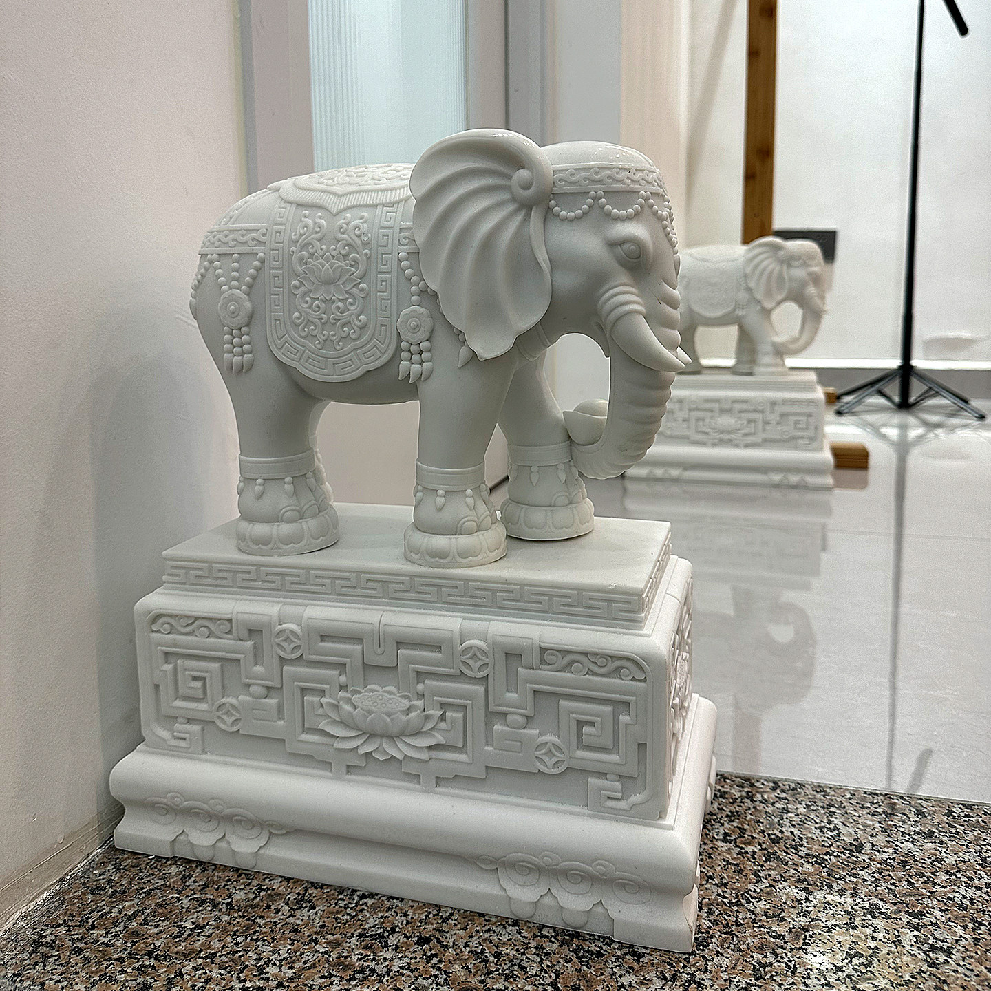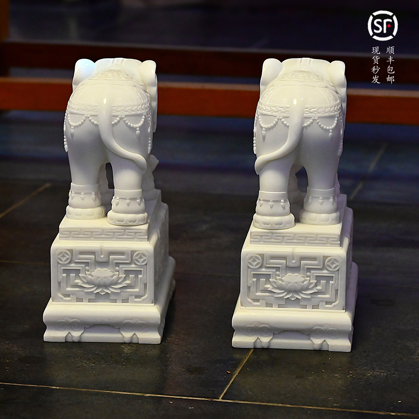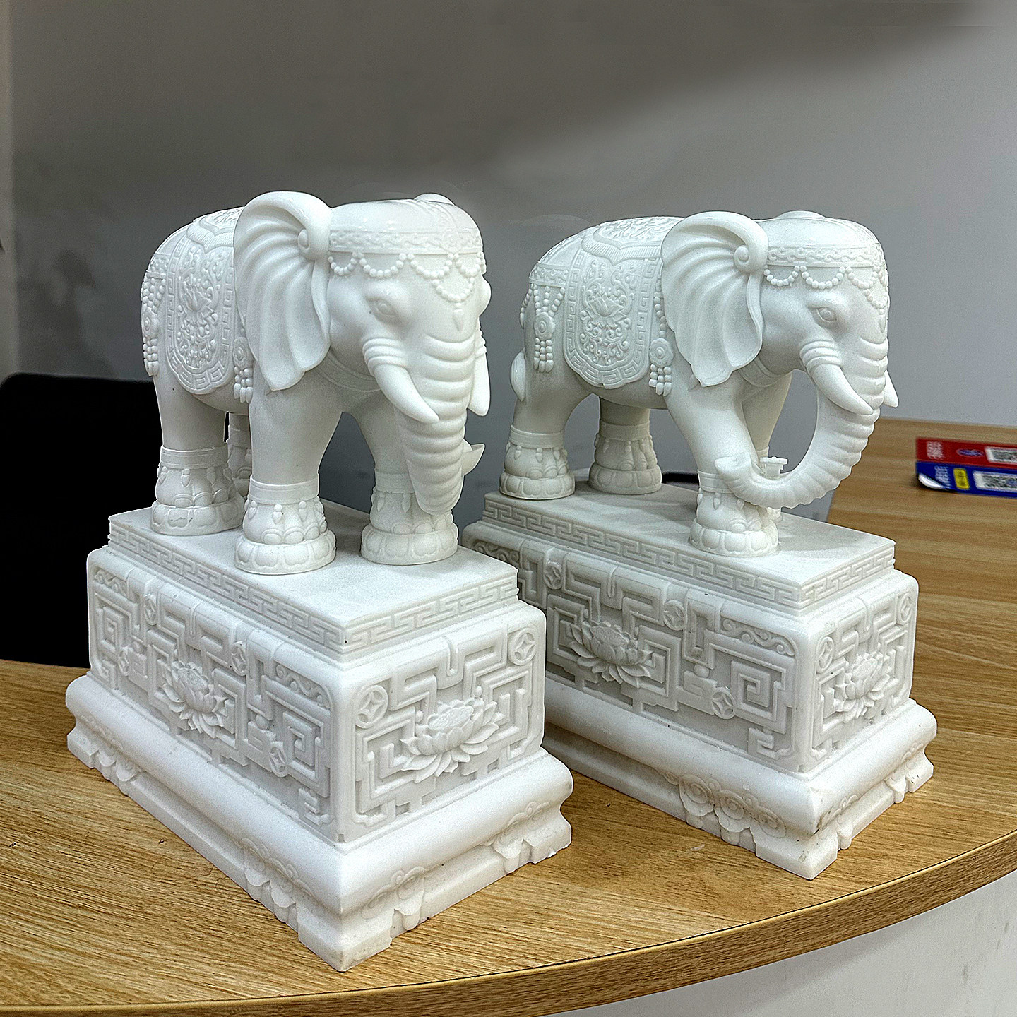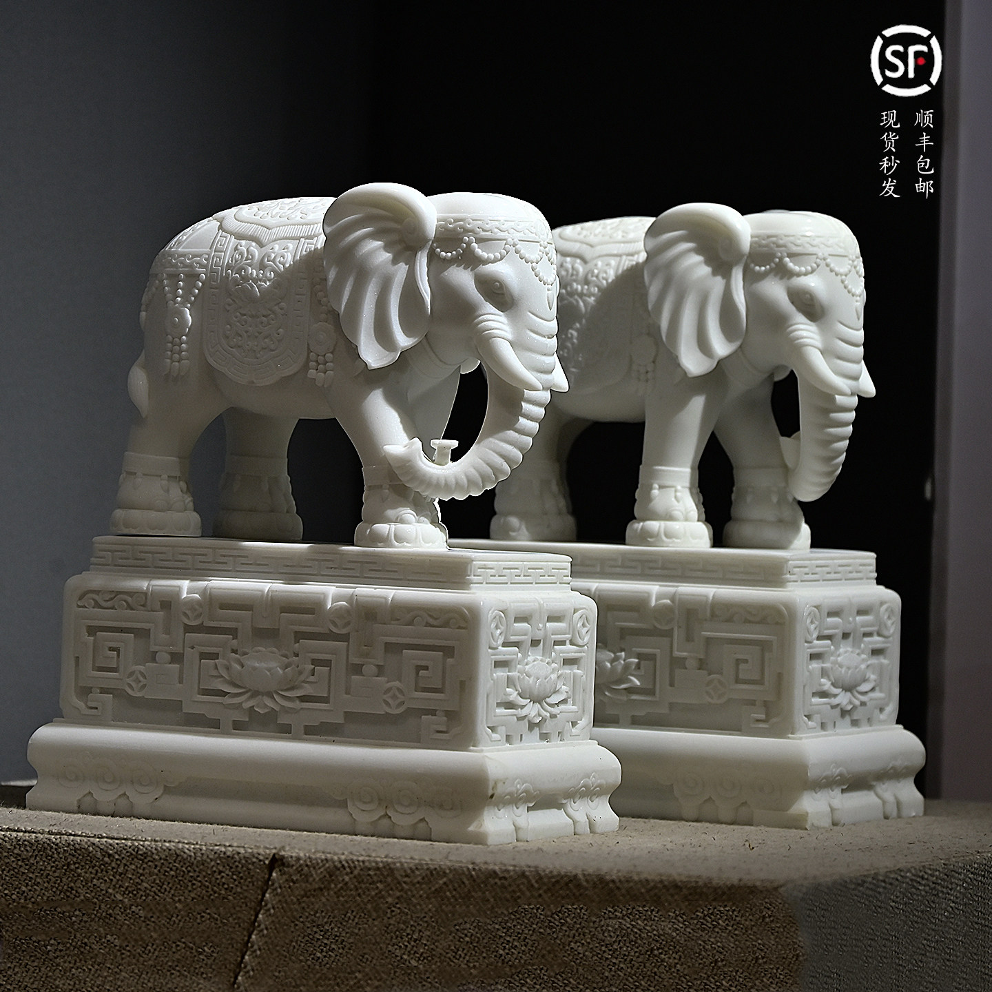 汉白玉石雕大象摆件一对家用办公室店铺开业乔迁送礼装饰品大门口