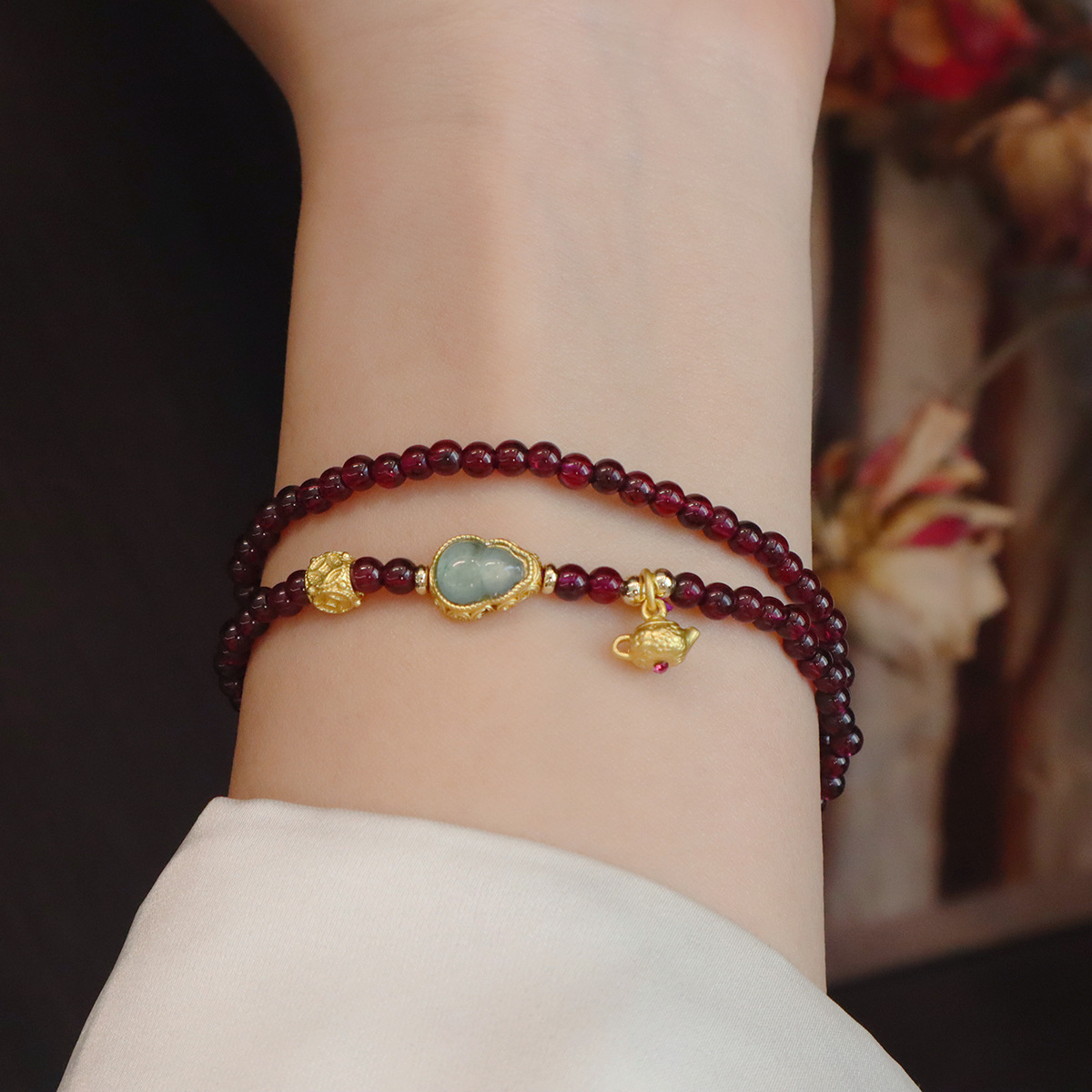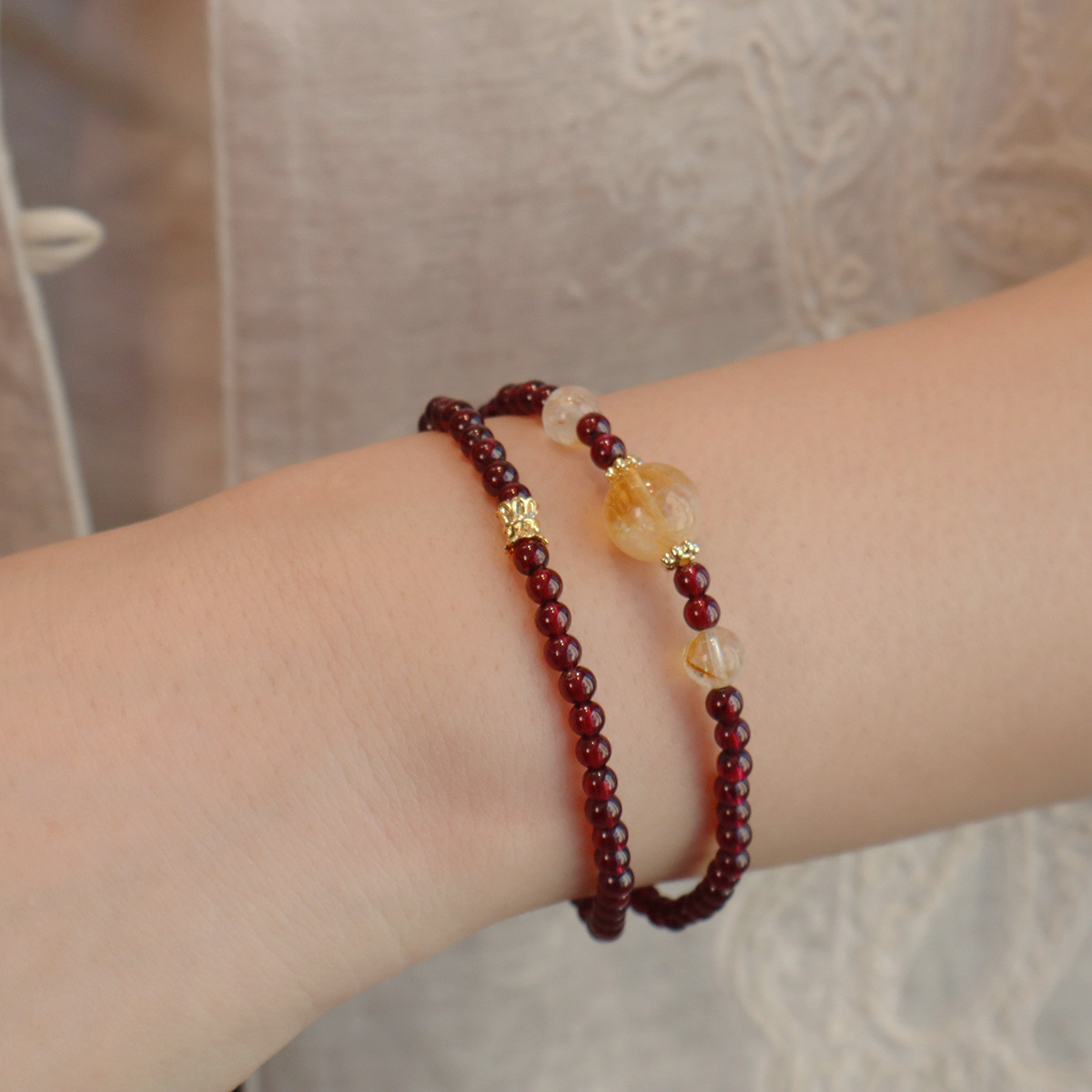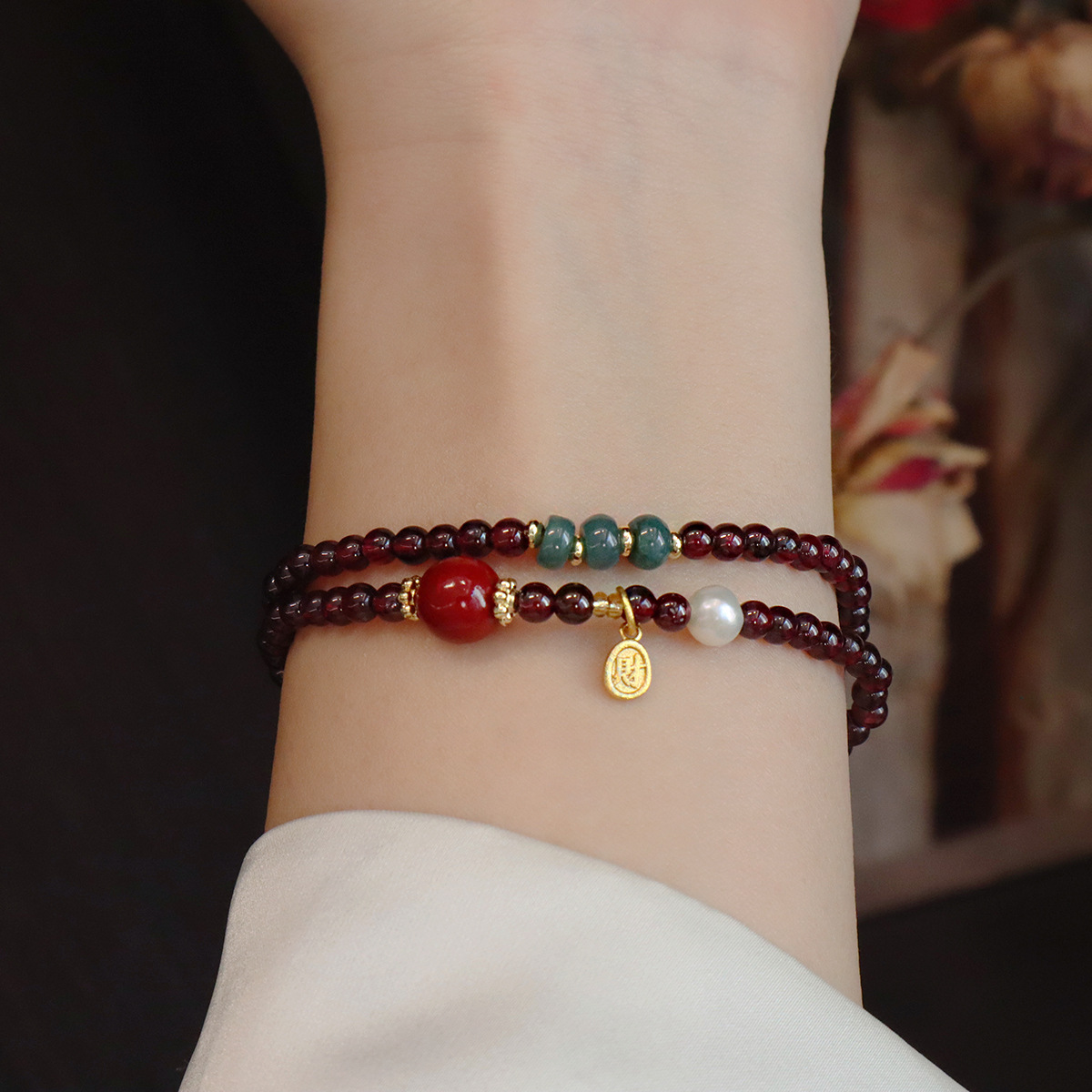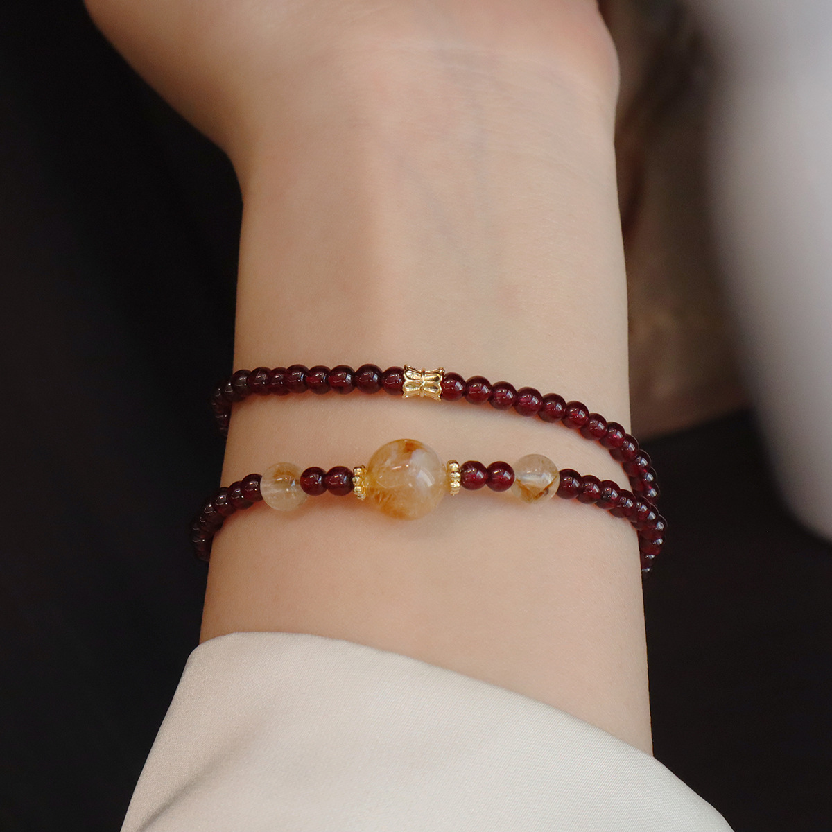日本品质天然石榴石新款多圈水晶石榴石手链新中式手串轻奢高级感