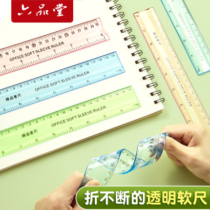 六品堂软尺子小学生专用套装加厚刻度尺透明软直尺可弯曲尺子测量多功能格尺塑料一年级考试学习用品文具组合