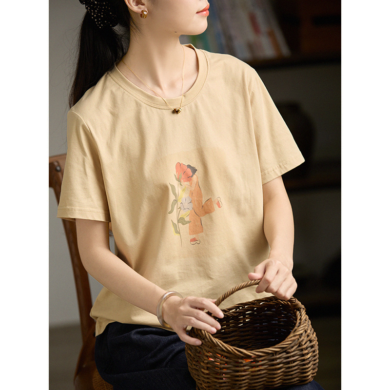 谷家 100%棉原创设计印花短袖t恤 趣味图案文艺显瘦休闲上衣女夏