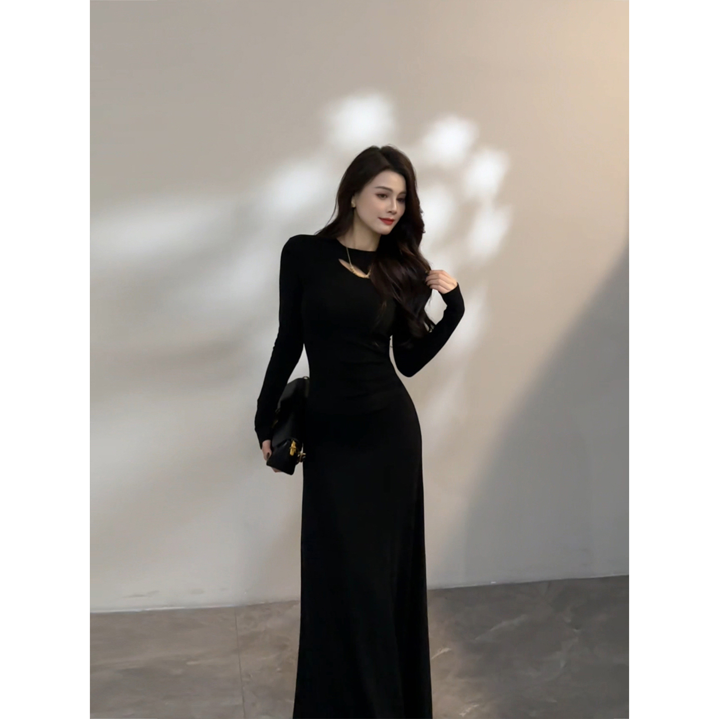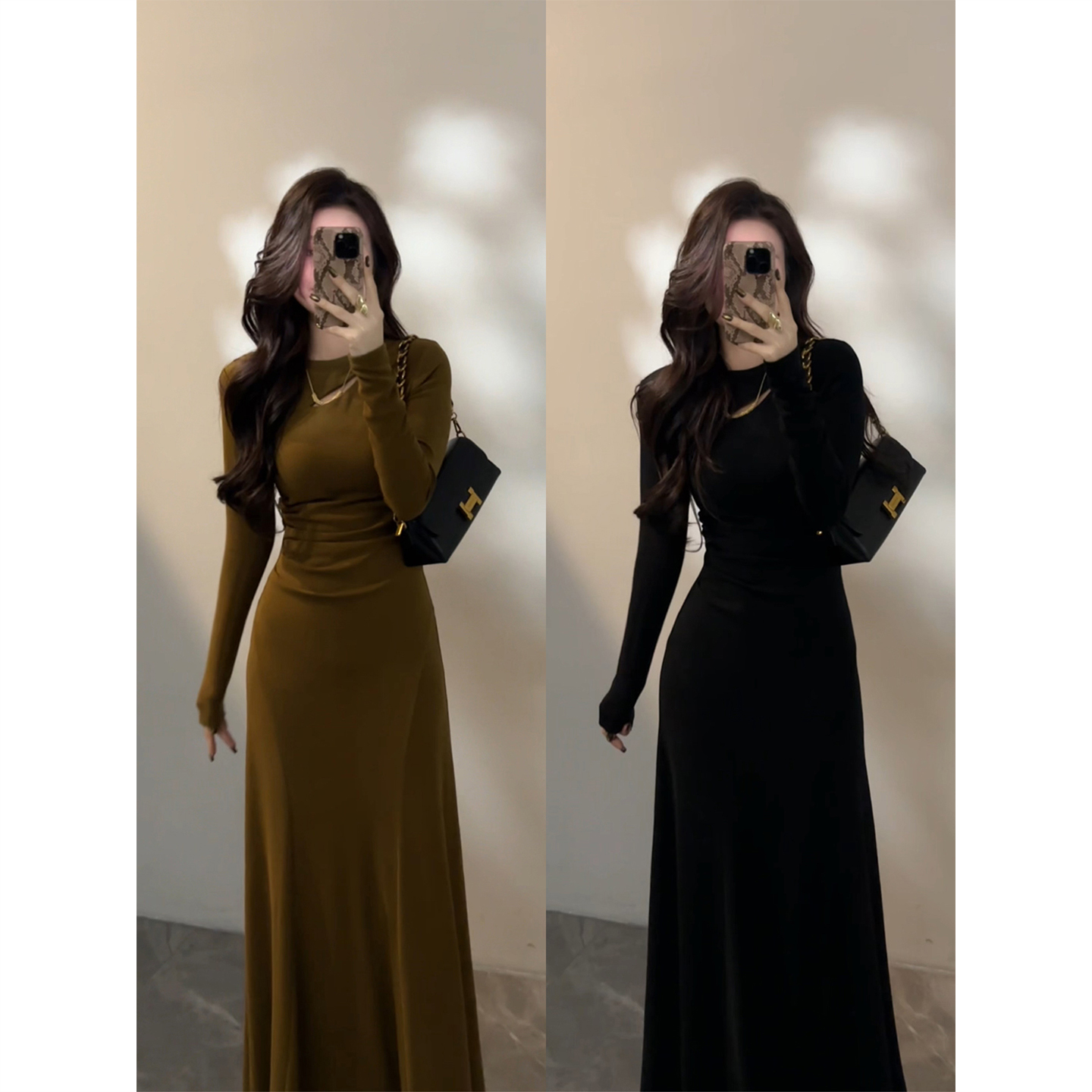 大婷婷 长袖显瘦修身加绒加厚连衣裙气质长款裙子秋冬新款DT1671