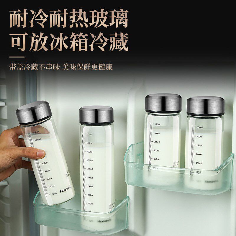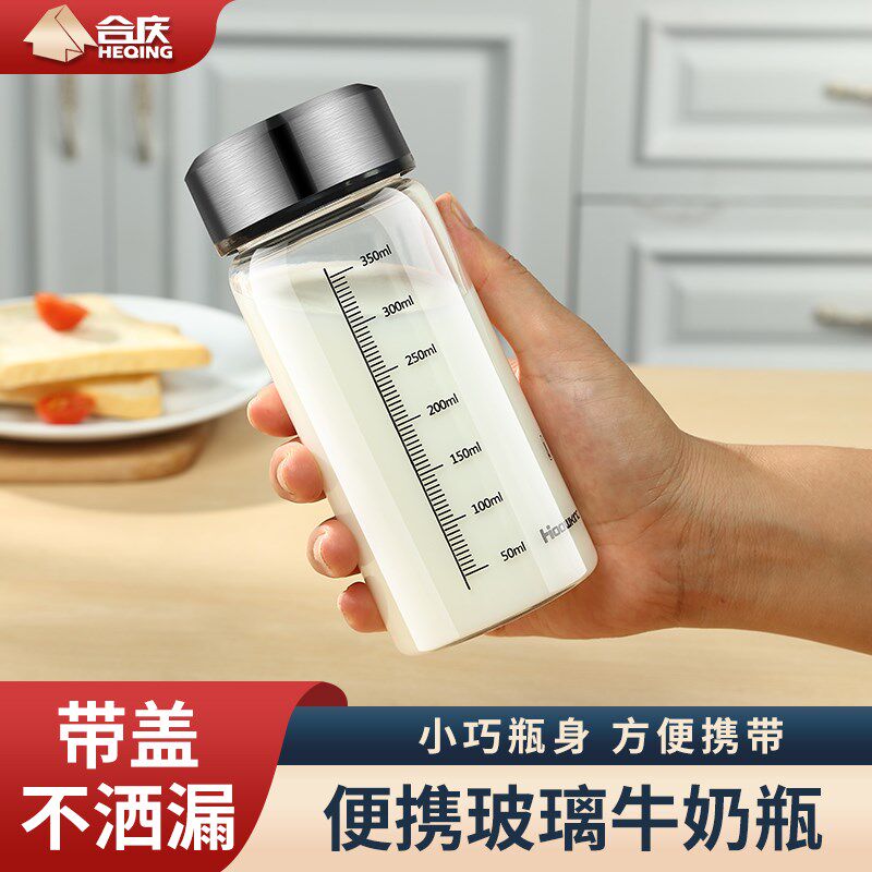 牛奶杯耐高温玻璃学生便携可微波豆浆杯子家用带盖刻度杯密封水瓶