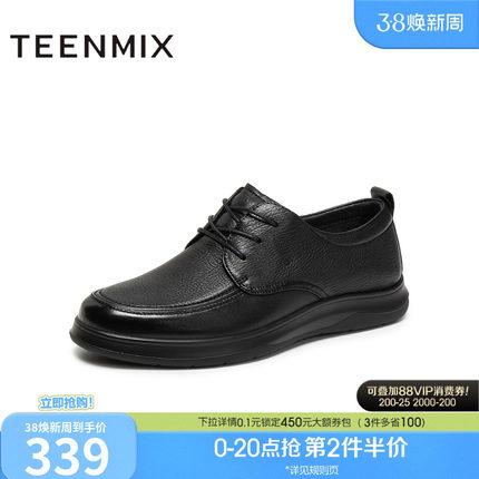 天美意秋季新款商场同款复古系带通勤上班男休闲皮鞋3WR02CM5