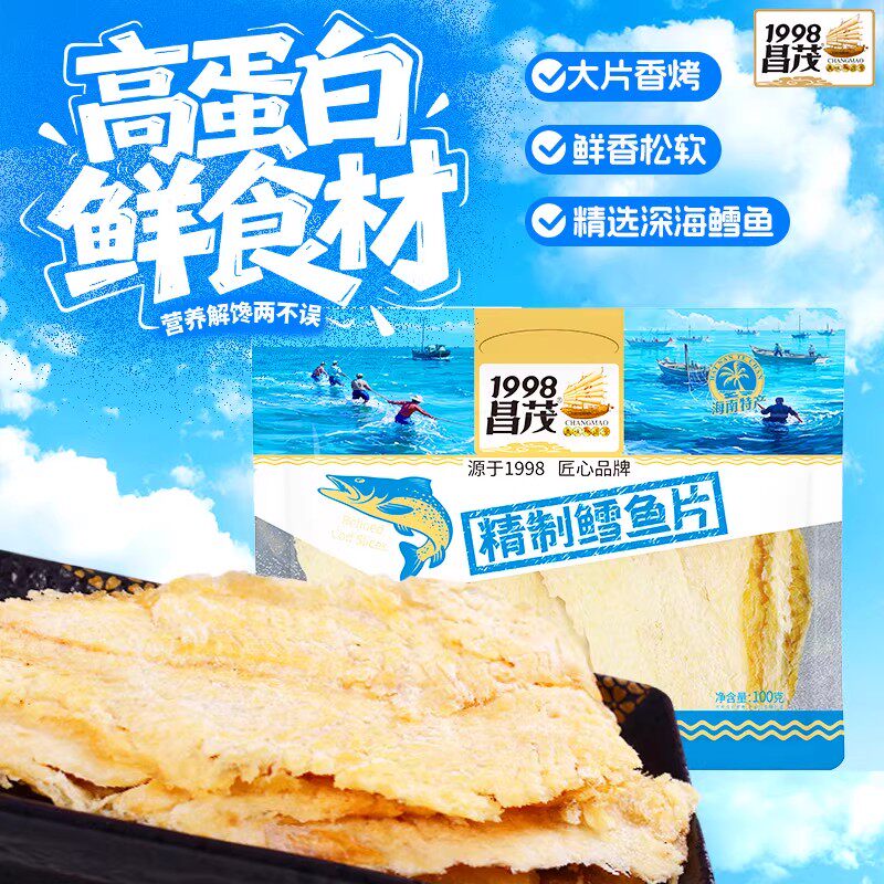 海南三亚特产昌茂鳕鱼片海鲜干货即食现烤鱼片干三亚海味休闲零食