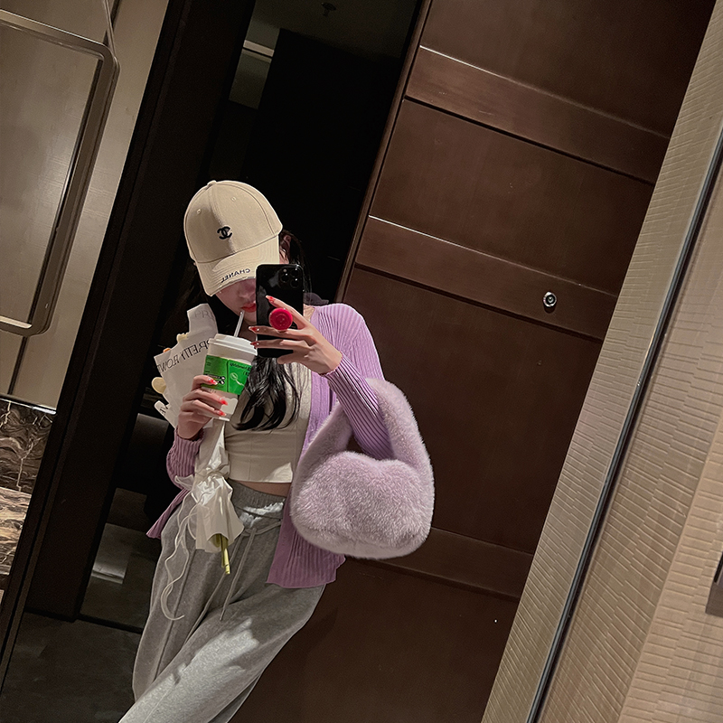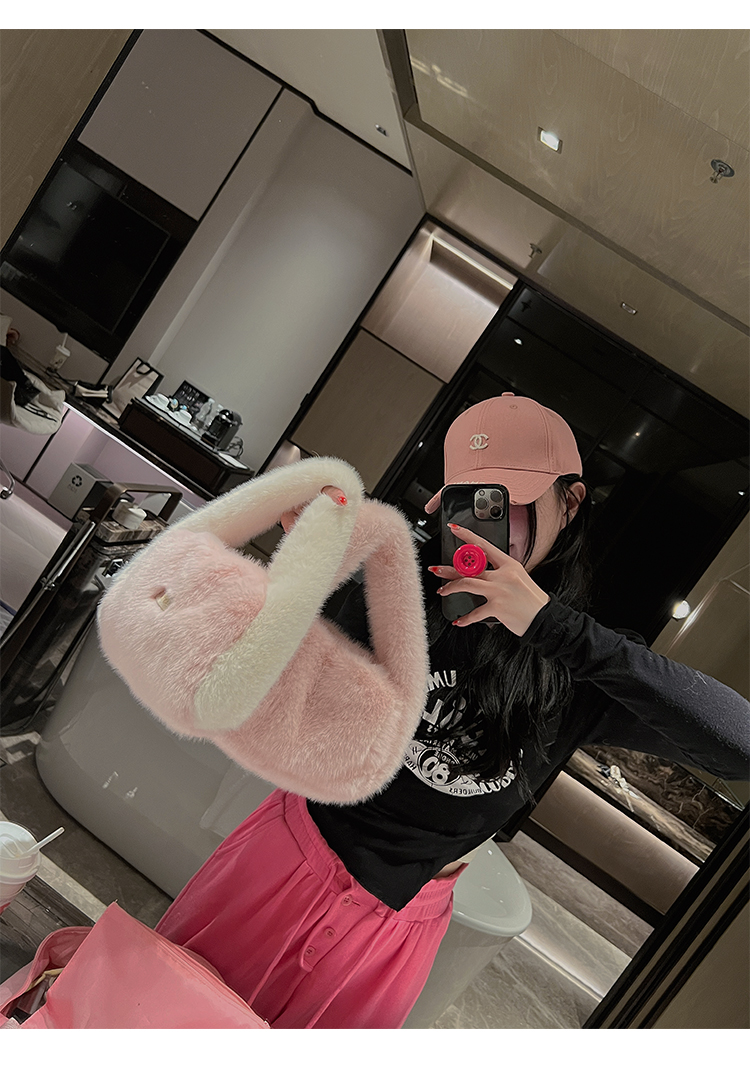 新款单把手提手拎毛绒毛毛包仿水貂毛皮草可爱单肩毛茸茸小方包女