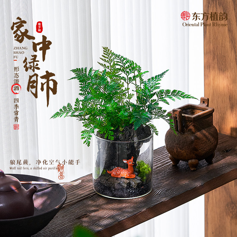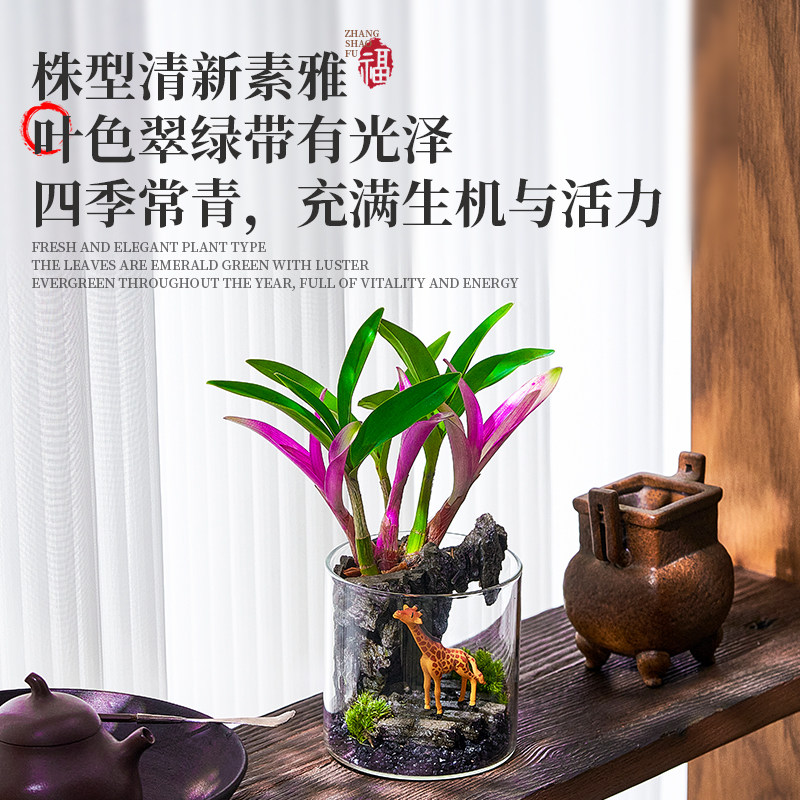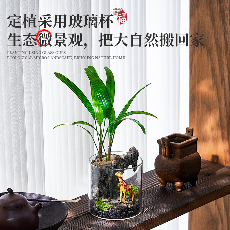 文竹苔藓微景观生态瓶造景小叶赤楠办公室内桌面石斛兰盆栽摆件