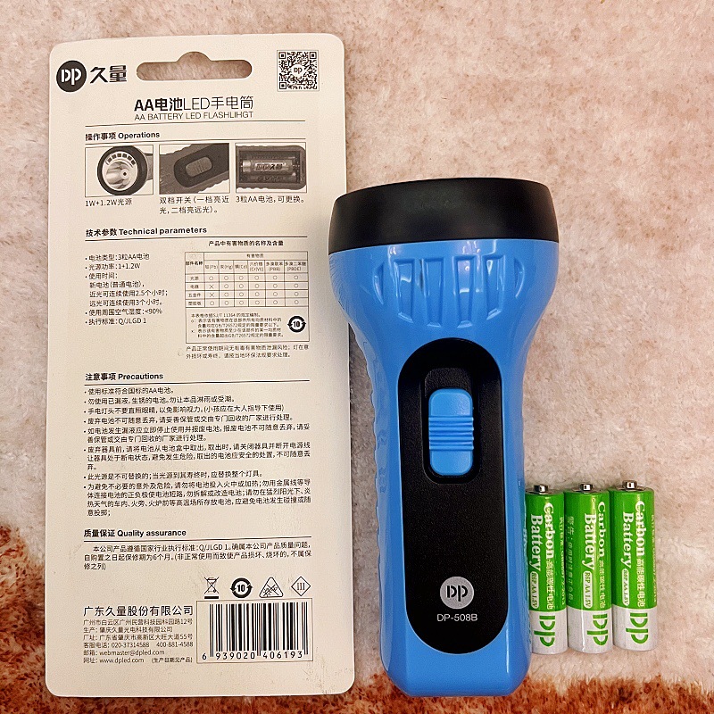 久量LED手电DP-508B户外家用两档手电筒配5号电池强光LED照明灯