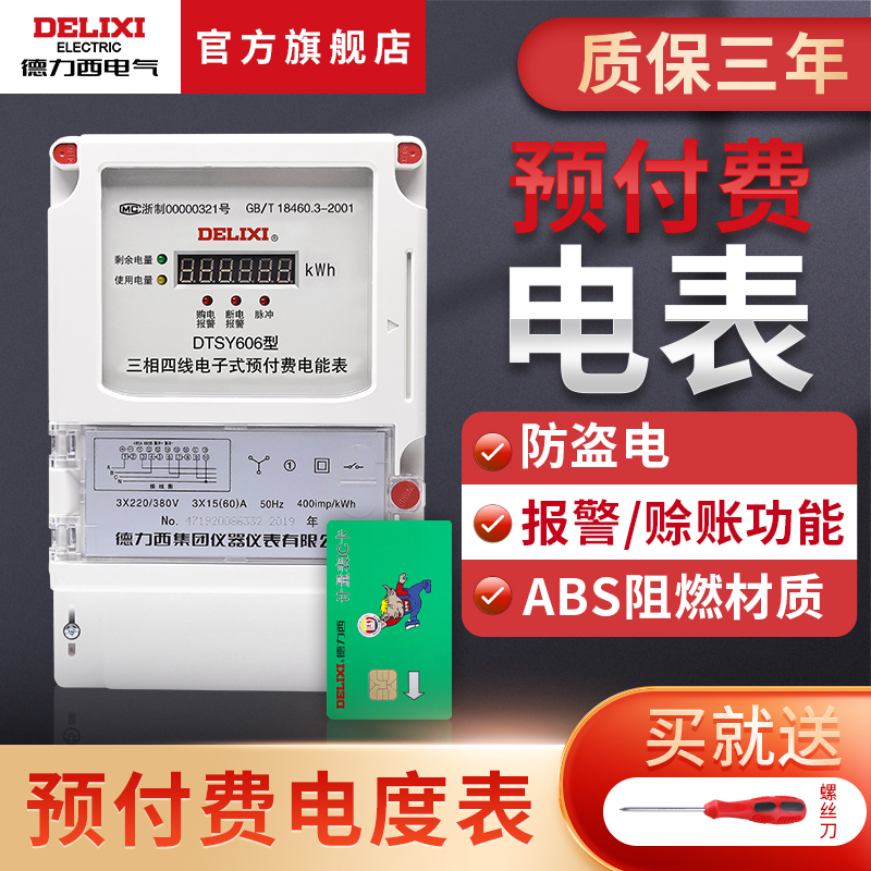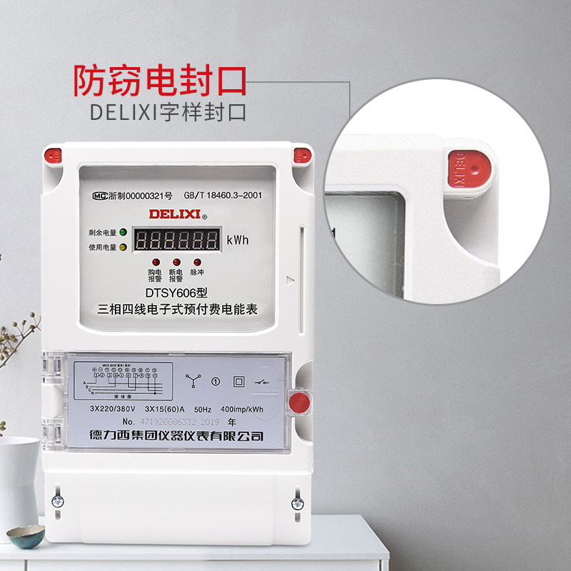 德力西电气单相预付费电表三相四线插卡电能表IC卡家用出租房220V