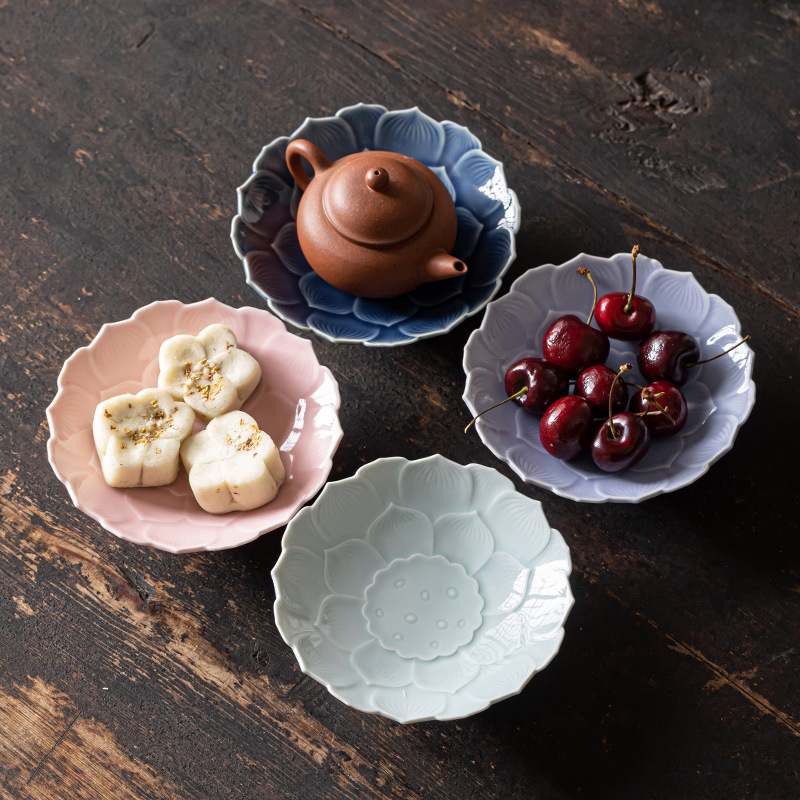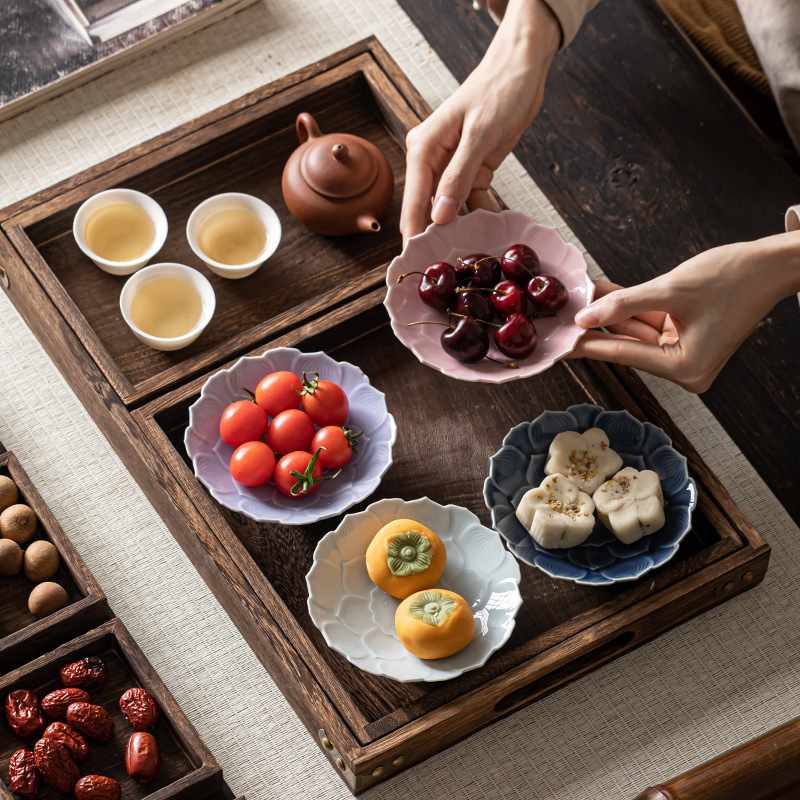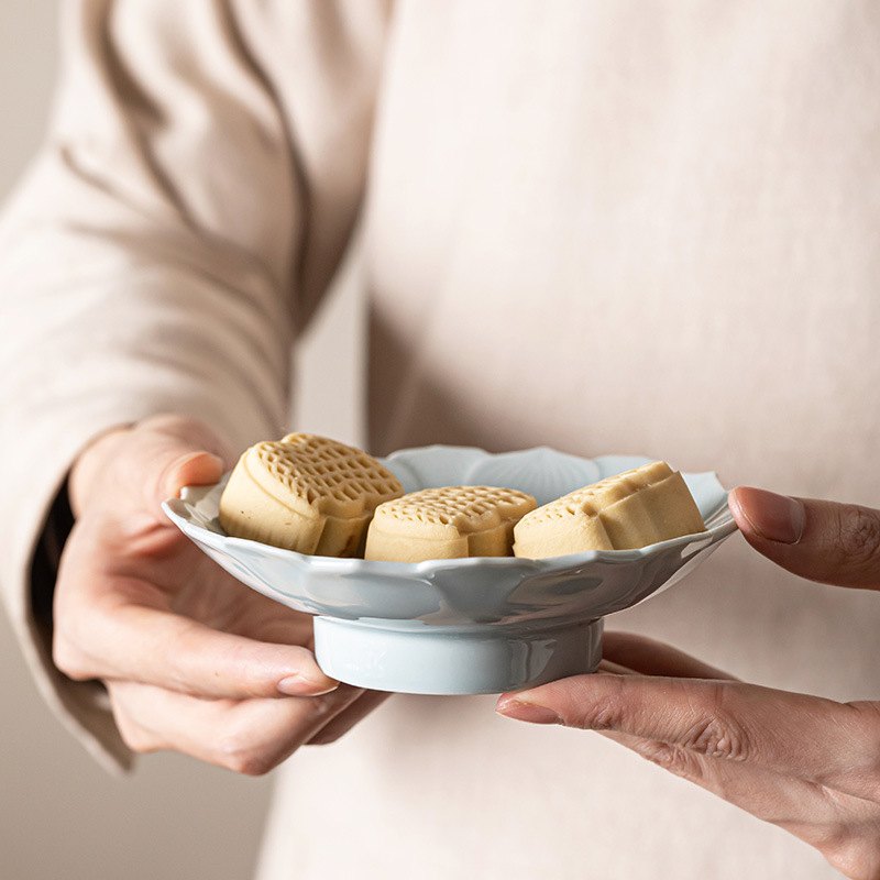 中式莲花小号茶点盘高脚托盘供盘禅意点心零食糕点干果盘果蔬