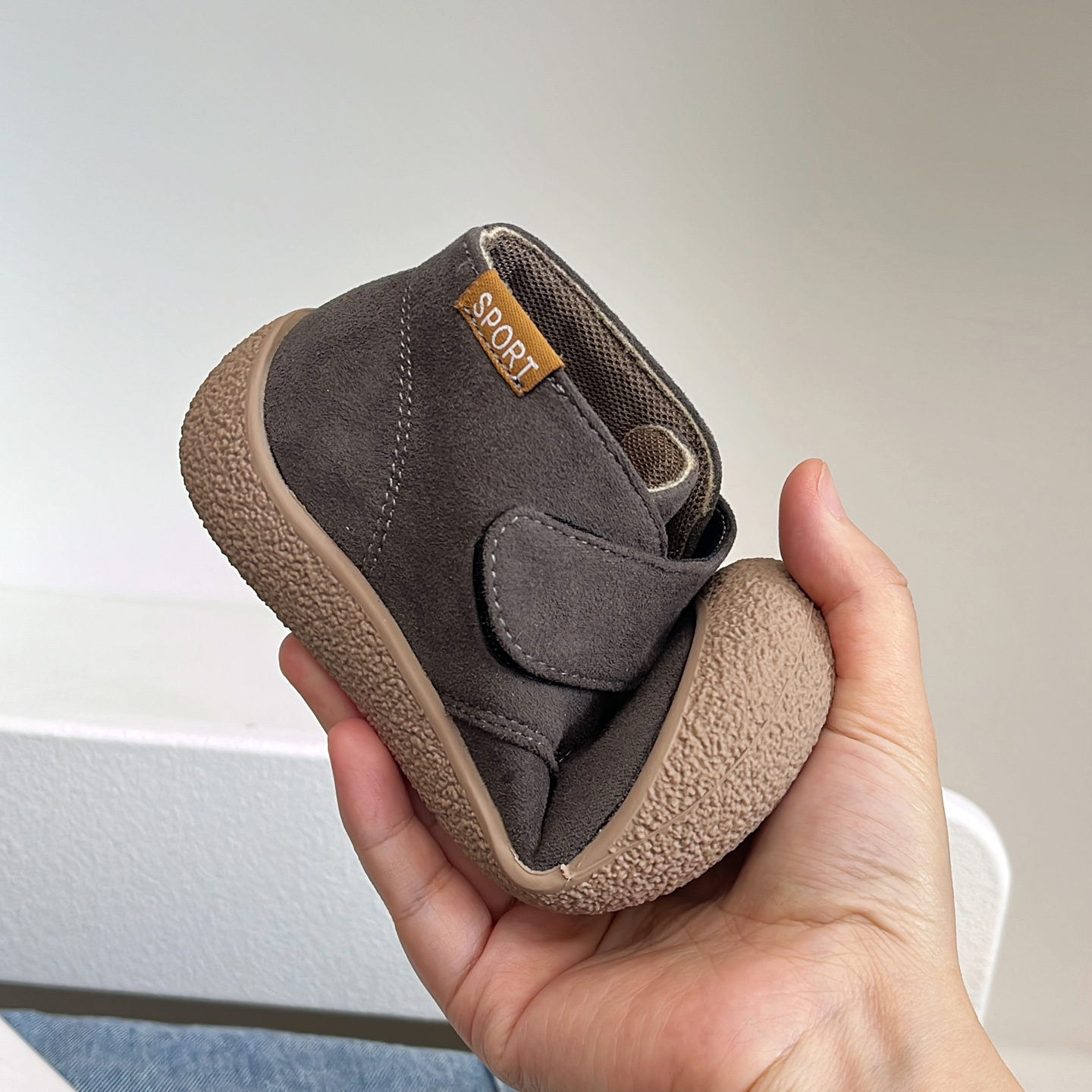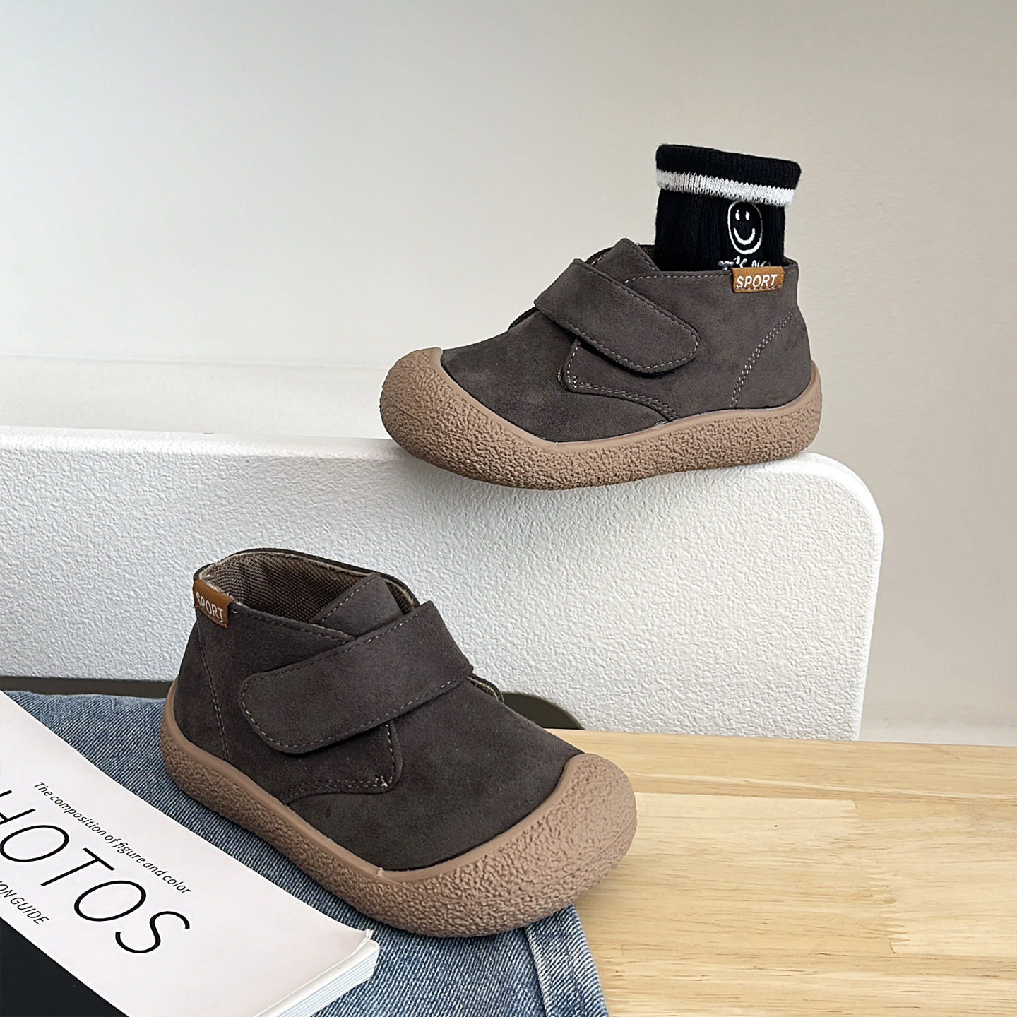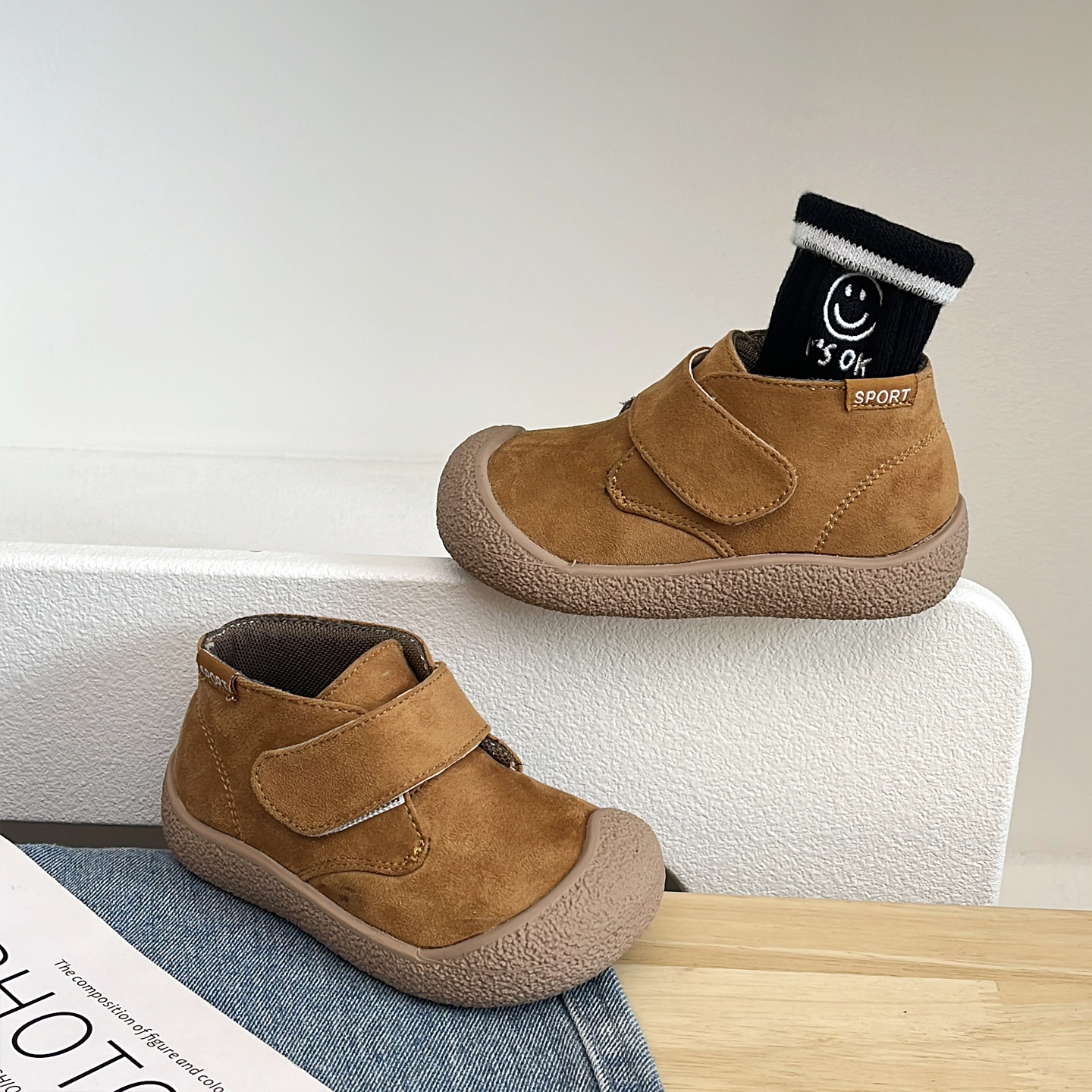 绒布帆布鞋男女童高帮魔术贴鞋