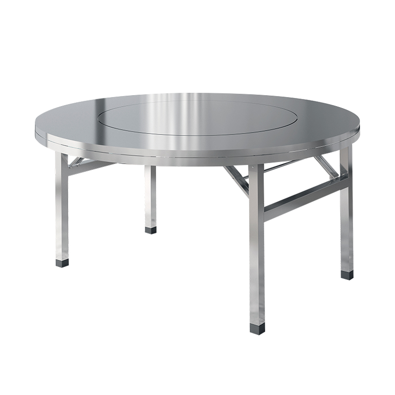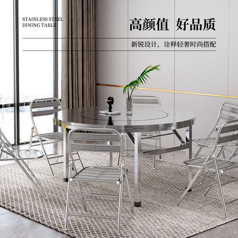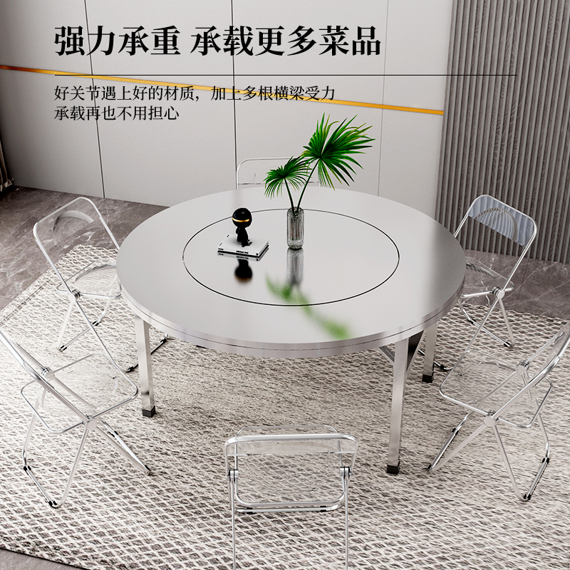 不锈钢内转盘圆桌可折叠免u安装餐桌圆台烧烤户外家用夜宵大圆桌