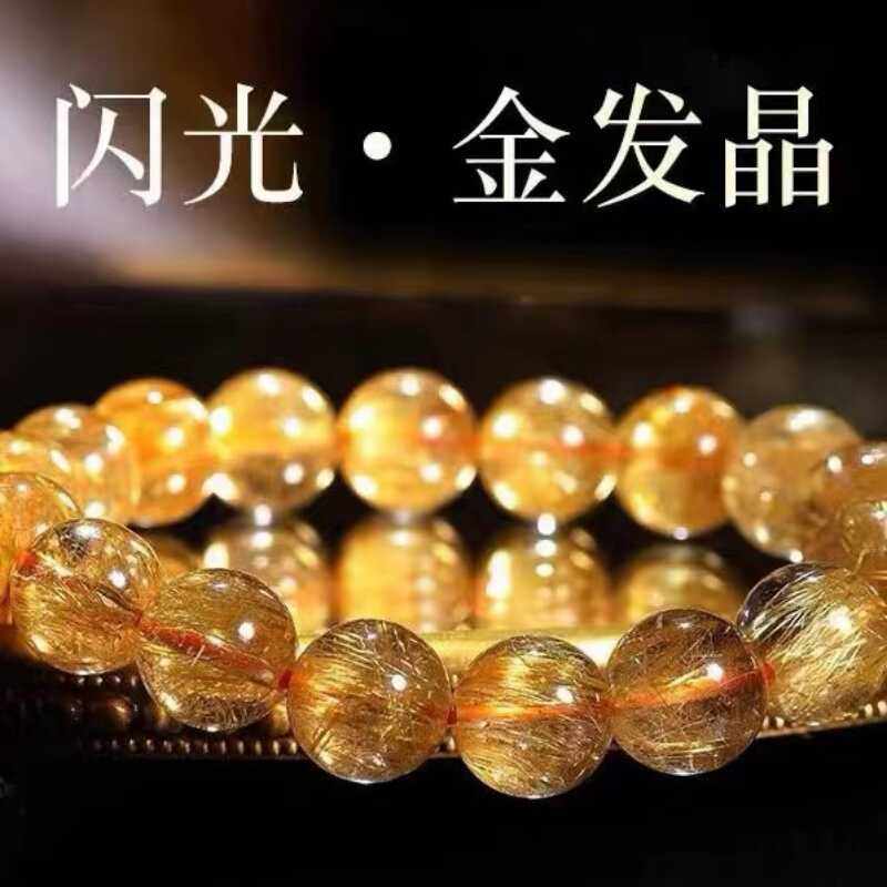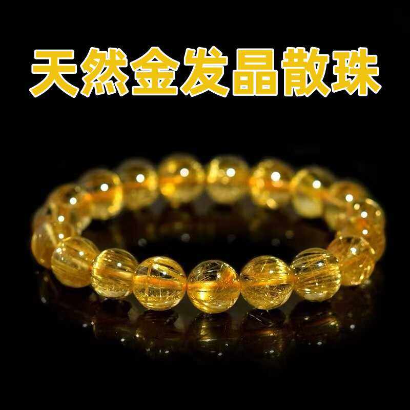 天然金发晶散珠收藏级发晶圆珠钛晶顺发圆珠手链diy多宝手串配珠