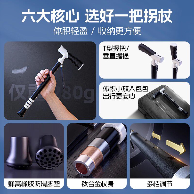 德国老人拐杖伸缩杖超轻便携拐棍防滑四脚助步器旅游登山折叠手杖