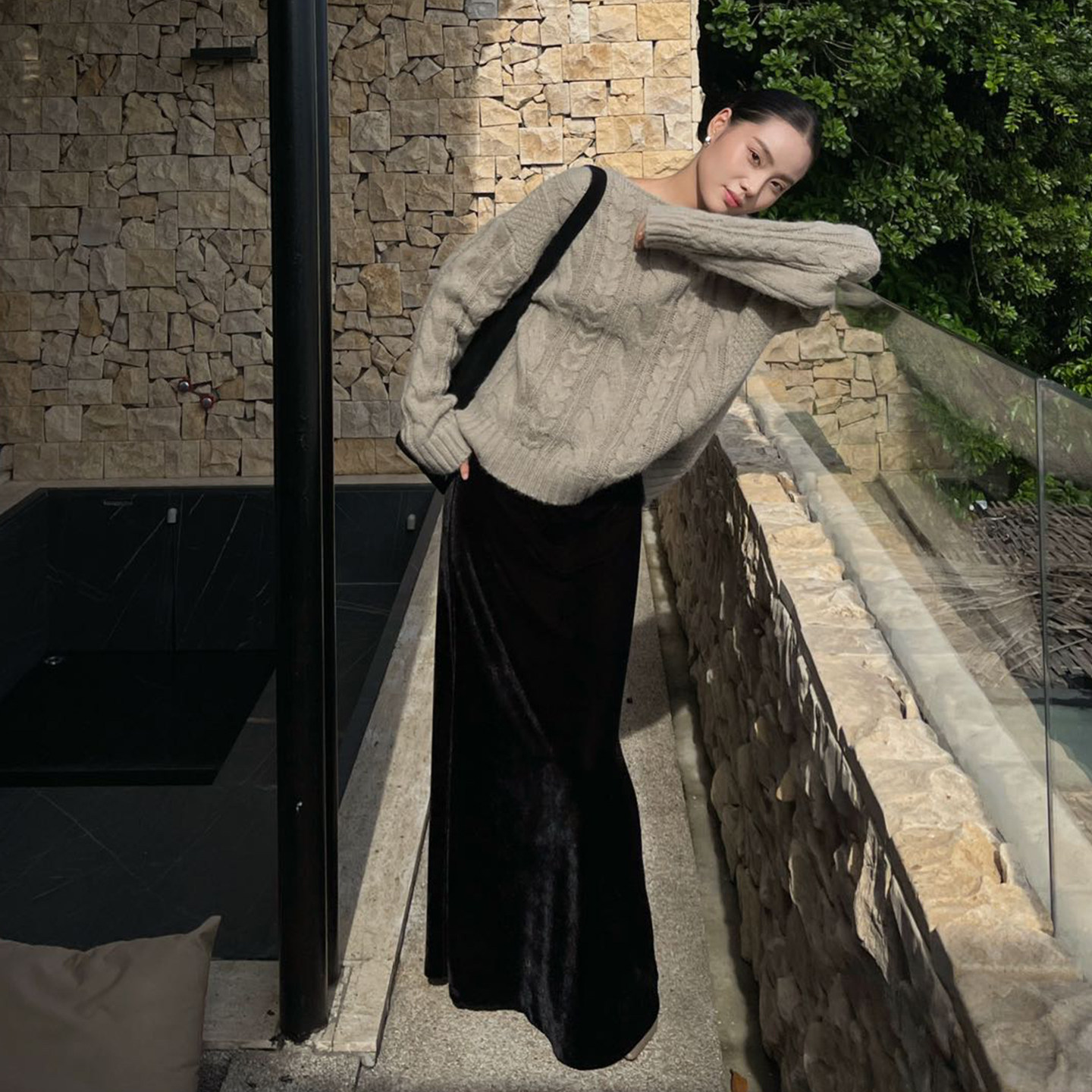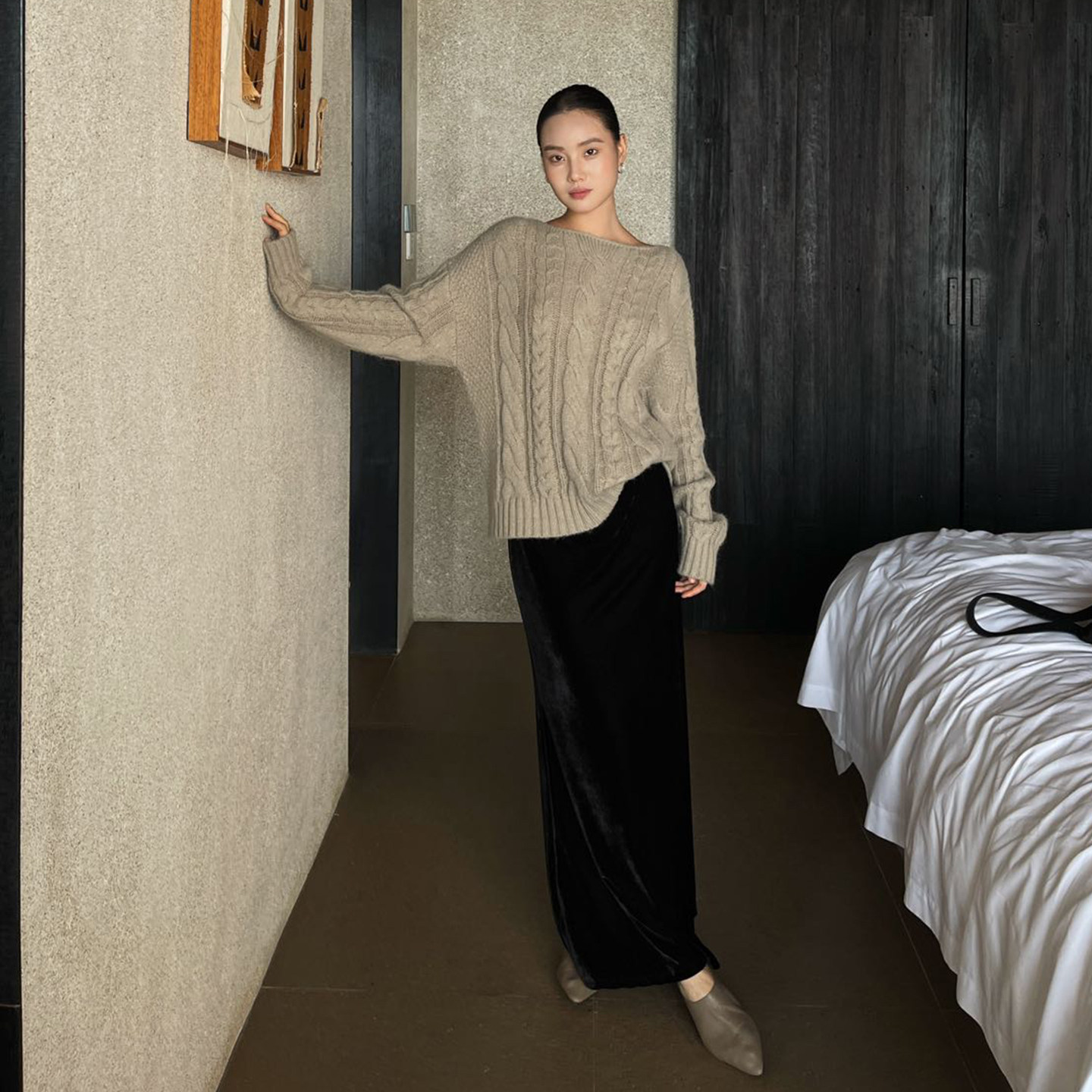 PURITYYH法式简约小众秋季松紧腰时尚鱼尾半裙洋气丝绒半身裙长裙
