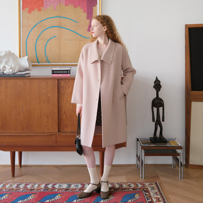 然若 切尔西领中长款双面毛呢大衣女秋冬新款通勤宽松羊毛外套