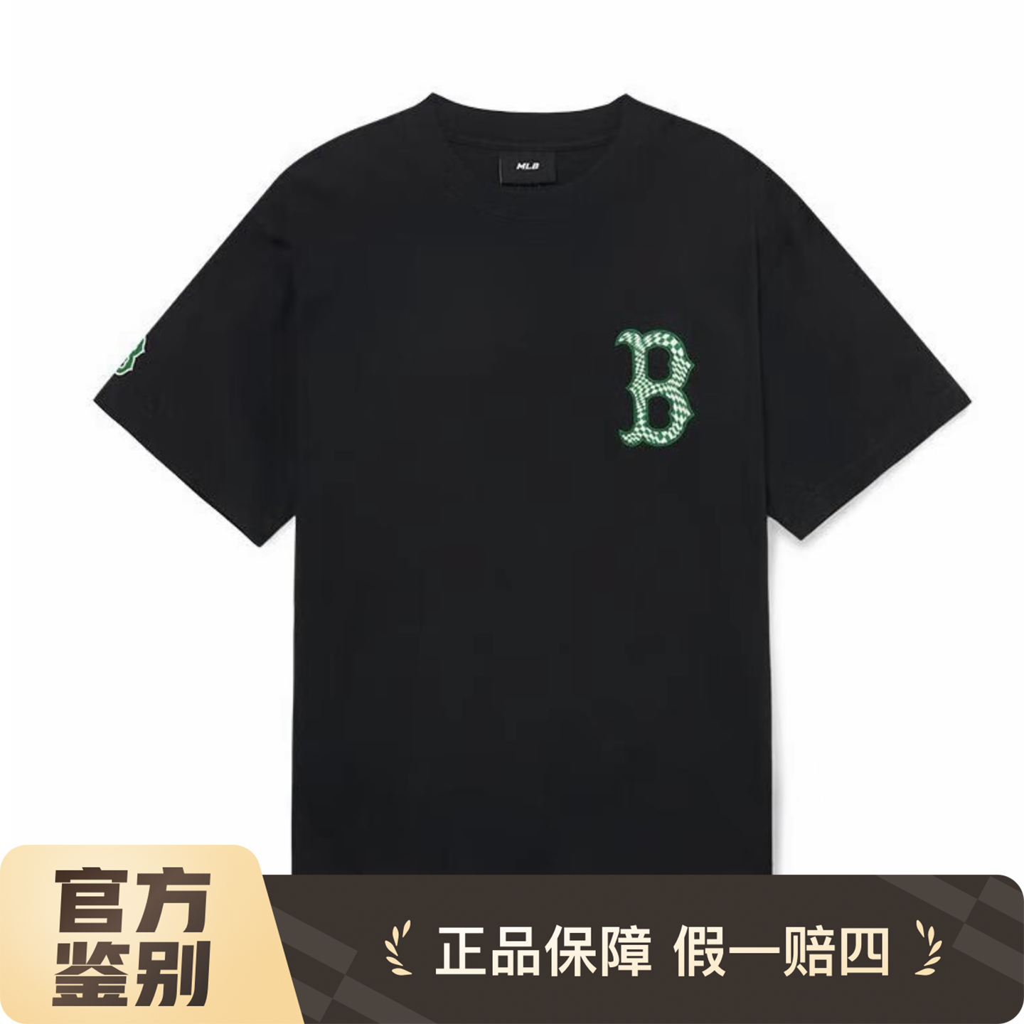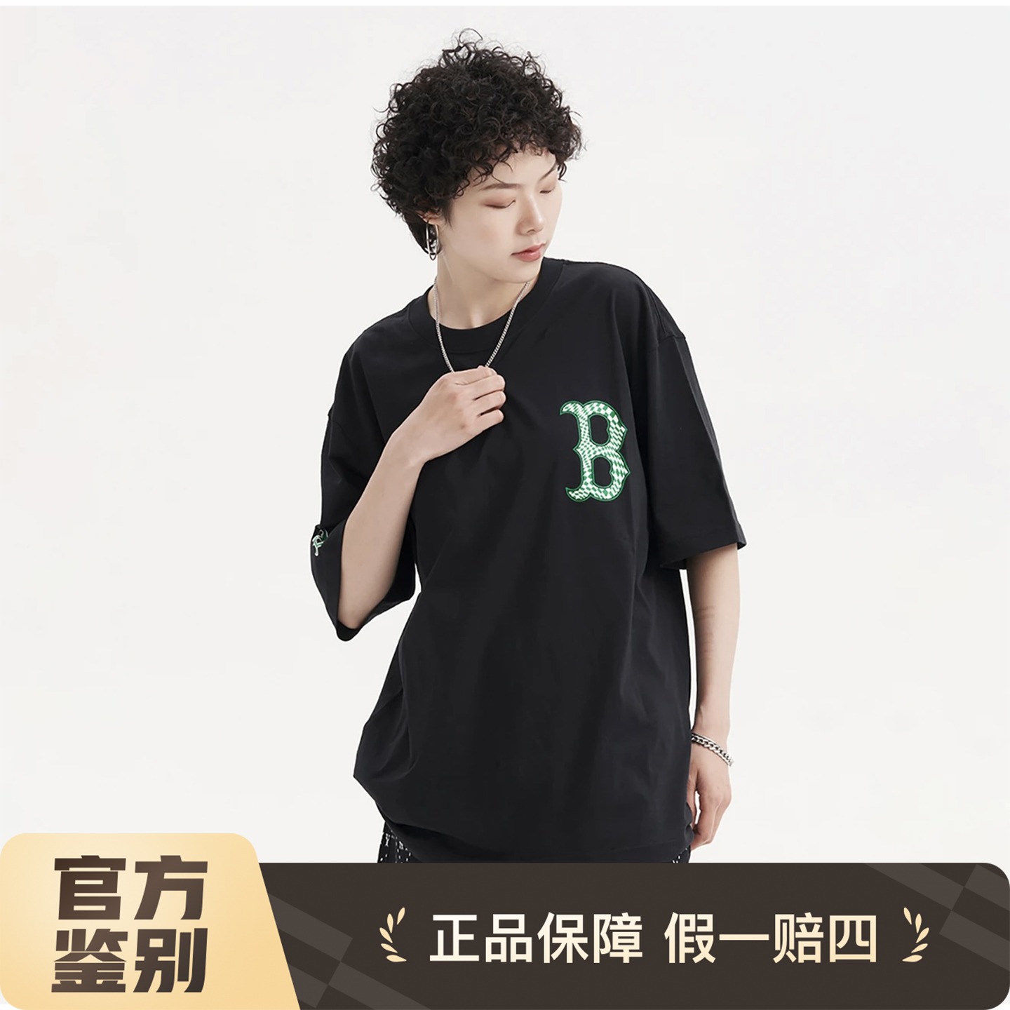 MLB 波士顿红袜队 美式复古字母印花圆领套头短袖 男女同款 黑色