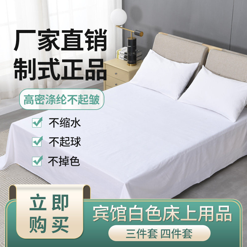 酒店宾馆纯白床单被罩足浴纯白色床上用品全棉白被套民宿三四件套