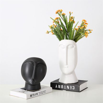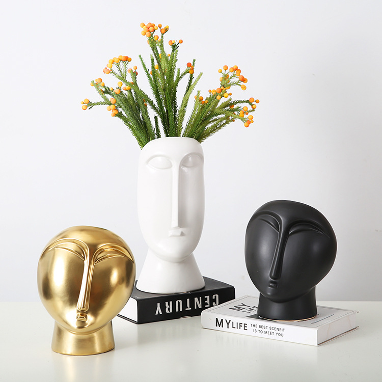 北欧艺术人脸花瓶陶瓷摆件干花花瓶样板房电视柜家居摆设软装饰品