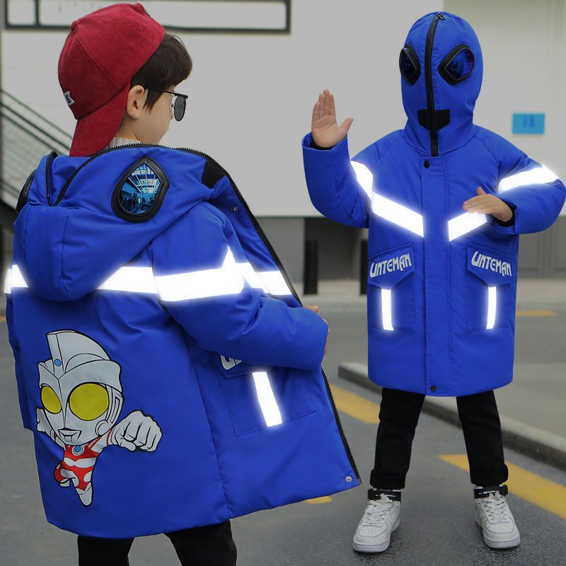 男童羽绒棉服2025冬季新款儿童奥特曼眼镜棉衣男孩中长款棉袄外套
