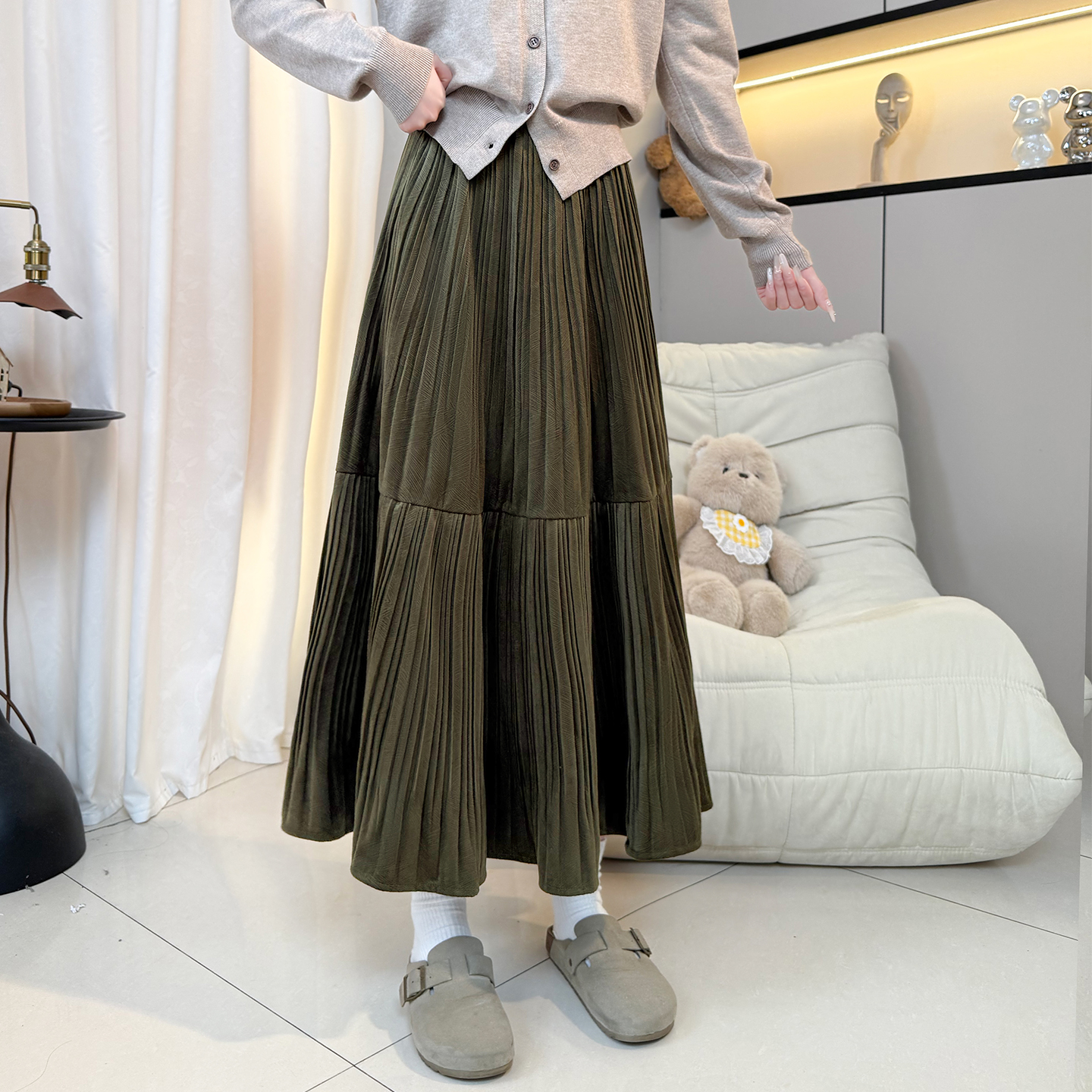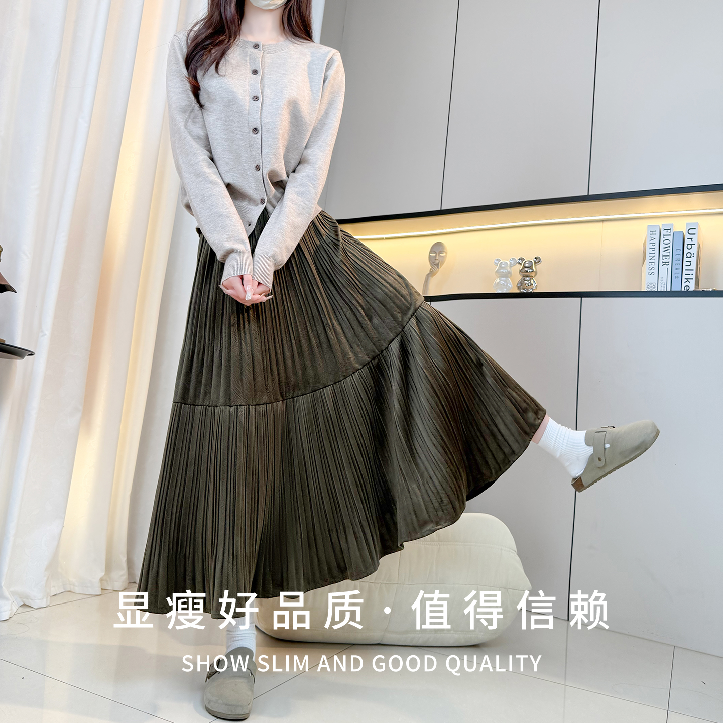 2025新款压褶金丝绒半身裙女秋冬高腰百搭显瘦高个子a字伞裙长裙