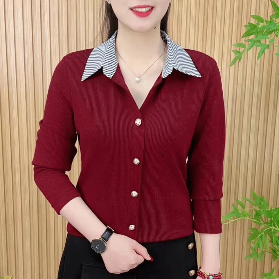 梦鲸好物女装2025新款休闲打底衫女时尚撞色翻领长袖衬衫显瘦a43