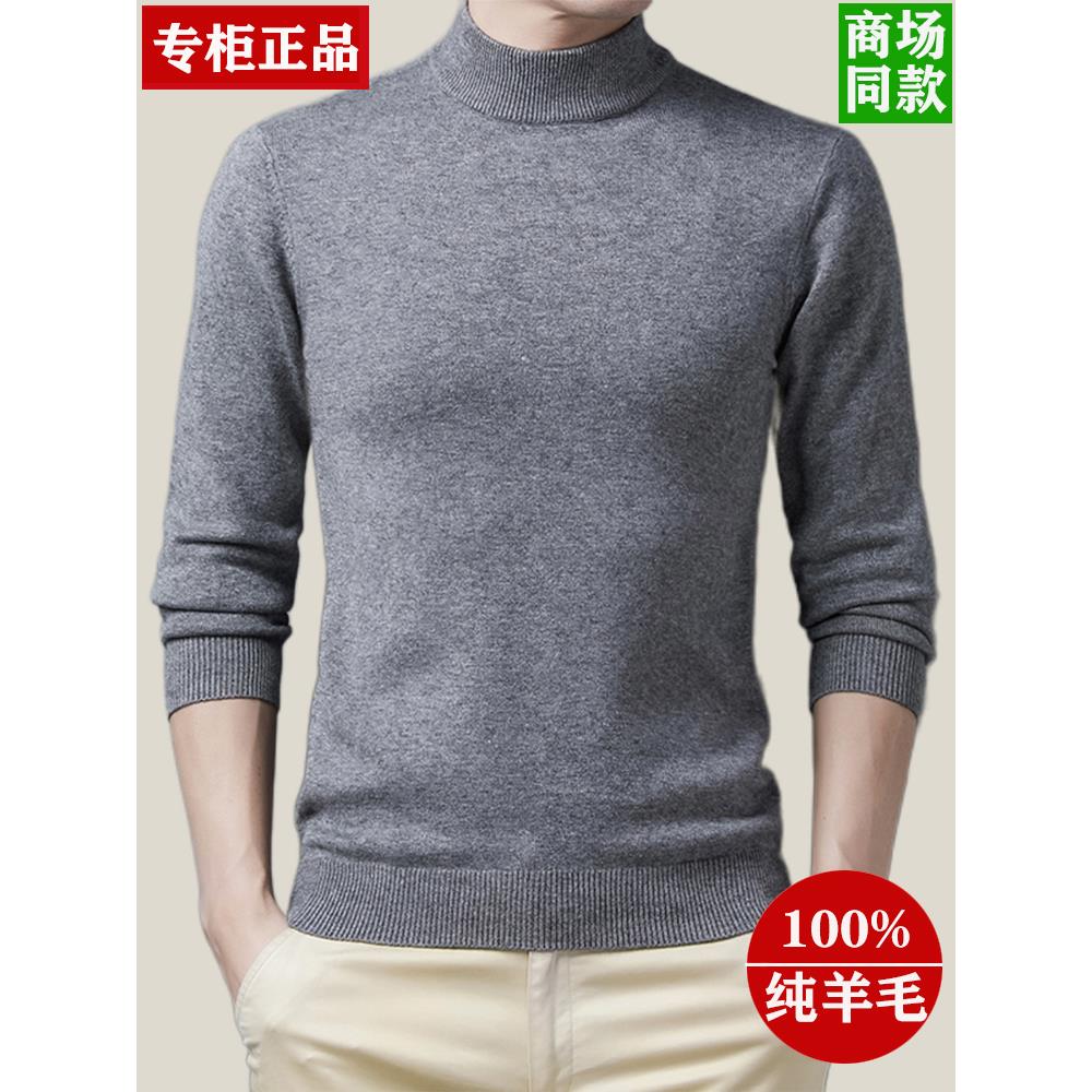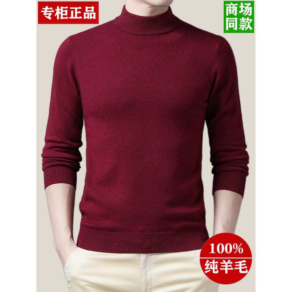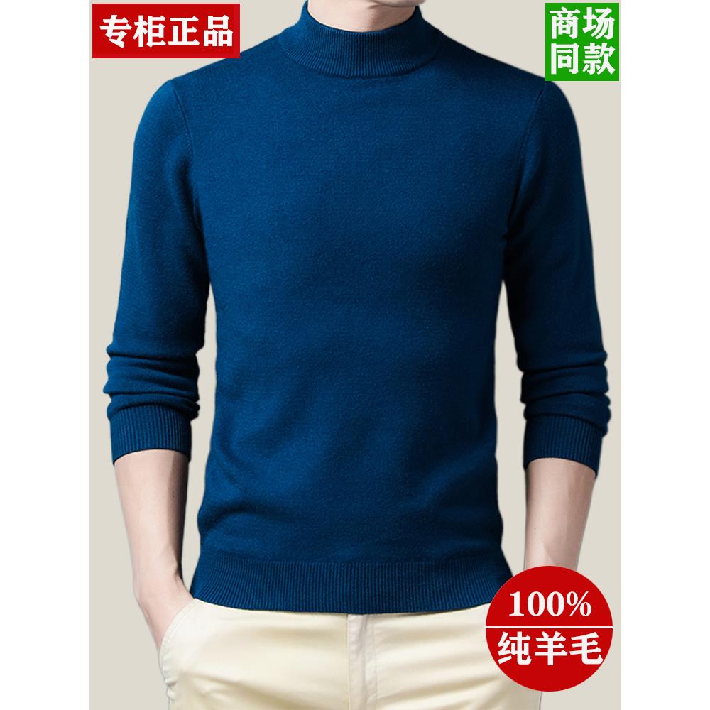 鄂尔多斯市产羊毛衫男100%纯羊毛纯色保暖加厚羊绒衫半高领毛衣男
