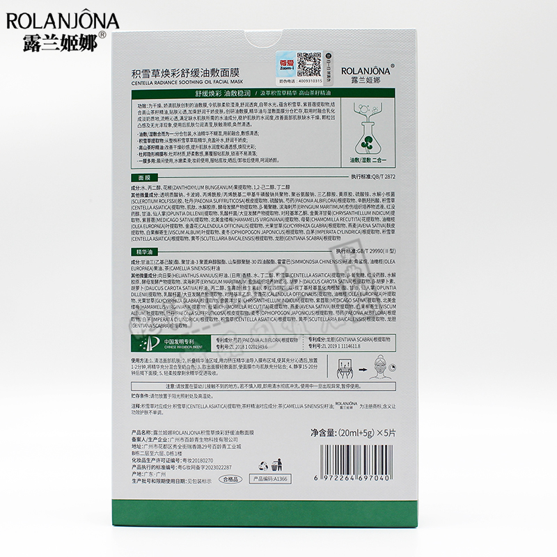 露兰姬娜积雪草焕采舒缓油敷面膜贴修护水油平衡补水保湿锁水提亮