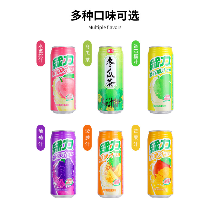 台湾绿力果汁490ml*5罐芒果汁多口味可选番石榴葡萄水蜜桃味饮料