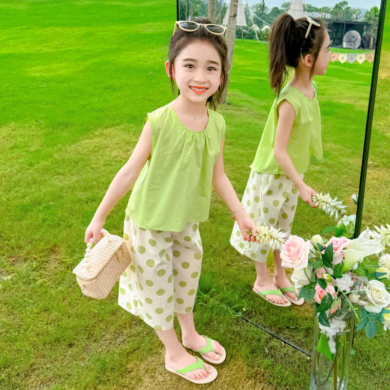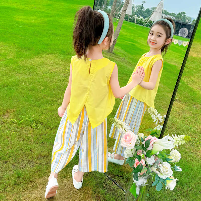 女童夏装网红洋气套装儿童纯棉背心哈伦裤女宝宝两件套女孩阔腿裤