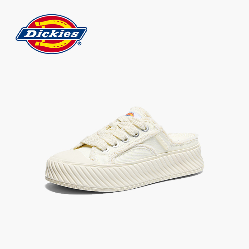 Dickies帆布鞋女2025夏季懒人一脚蹬包头半拖鞋女休闲厚底小白鞋