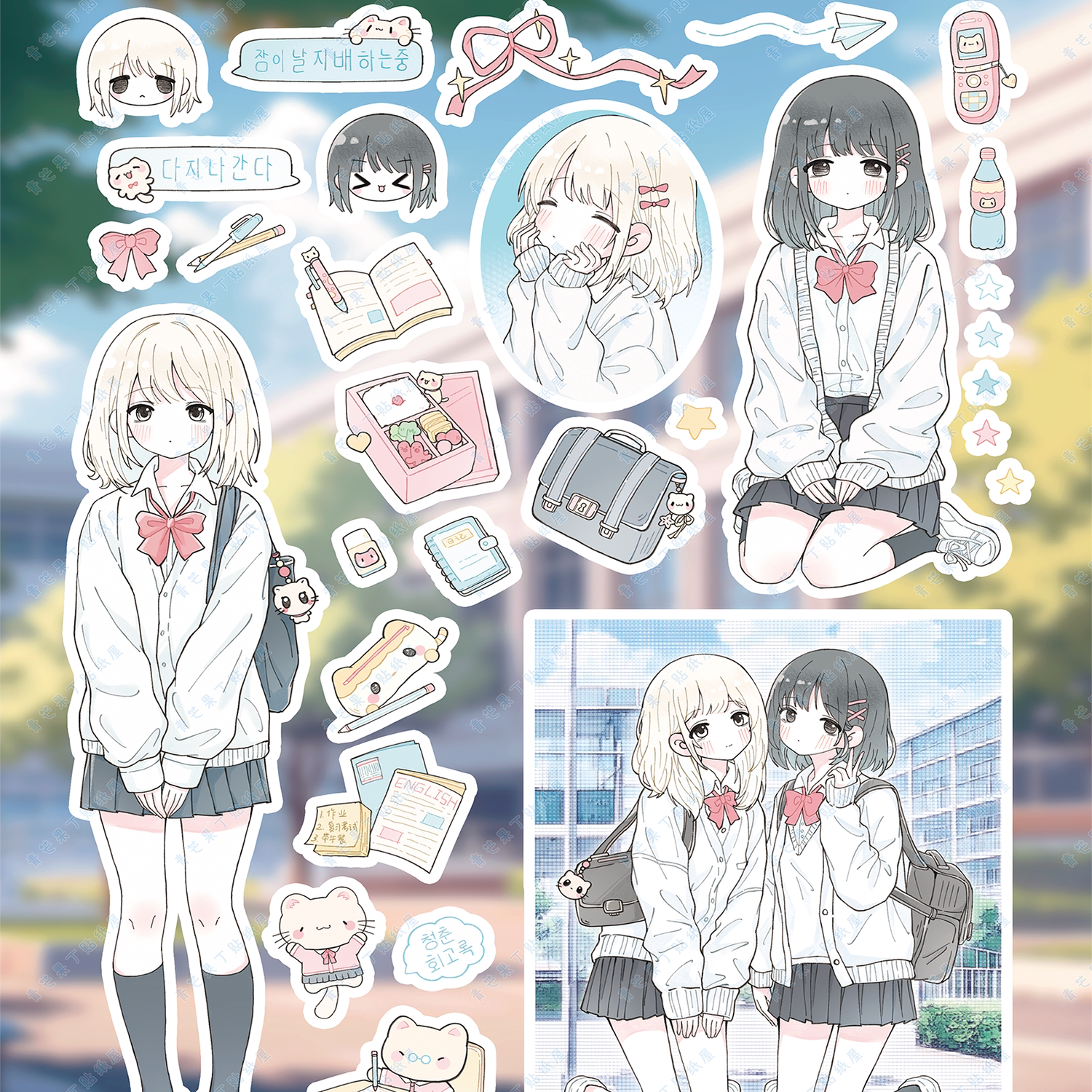日系贴纸古早风可爱少女jk拼贴