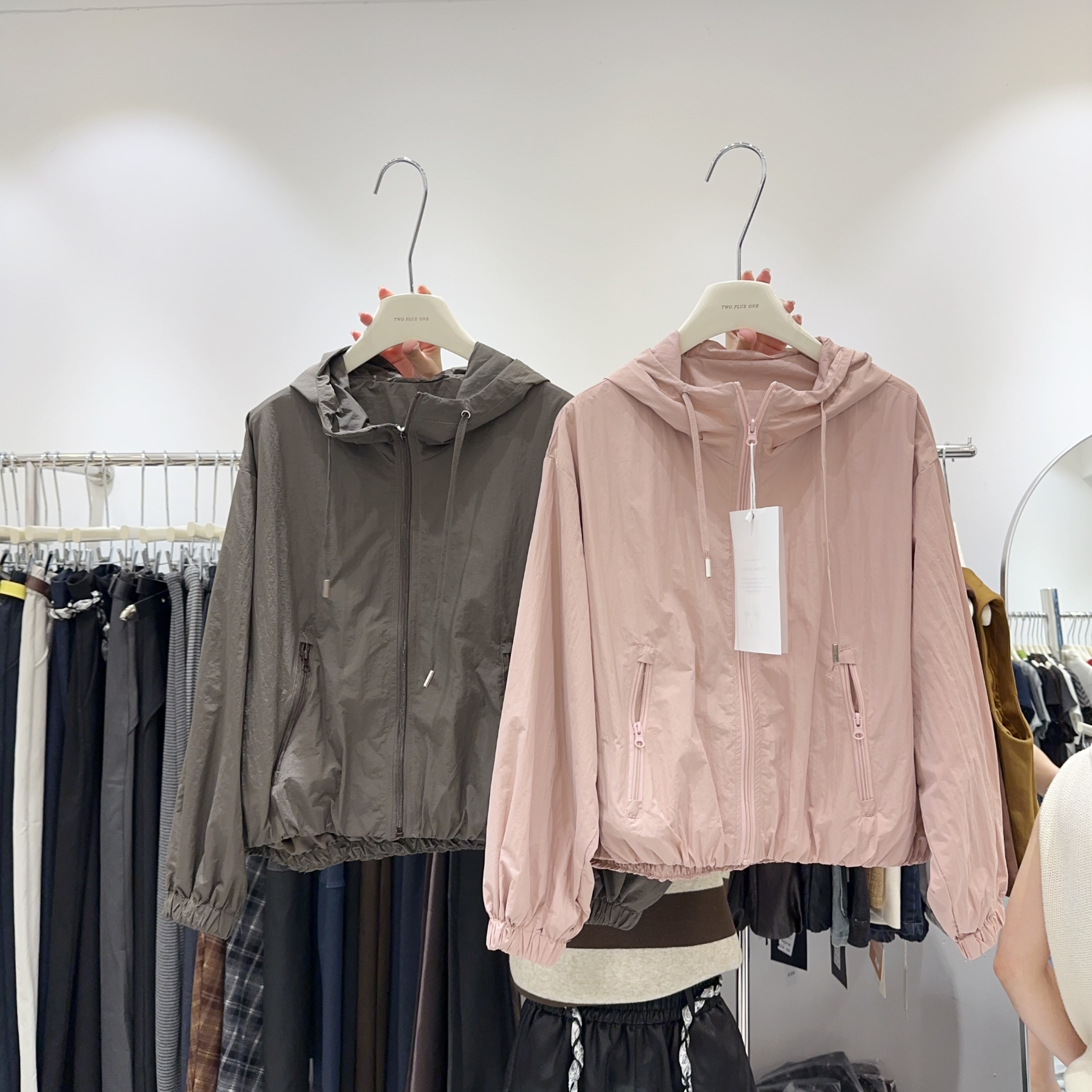 早秋薄款!宽松休闲百搭短款连帽夹克外套女长袖上衣冲锋衣拉链式