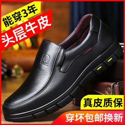 皮鞋男真皮商务休闲春秋季中老年爸爸鞋软底防滑透气大码男鞋厚底
