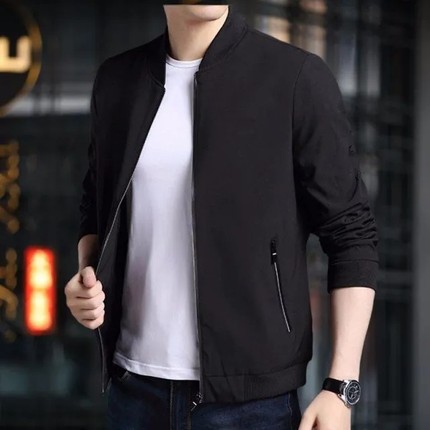 2024年新款春季男装夹克男士休闲外套潮流薄款棒球服上衣纯色茄克