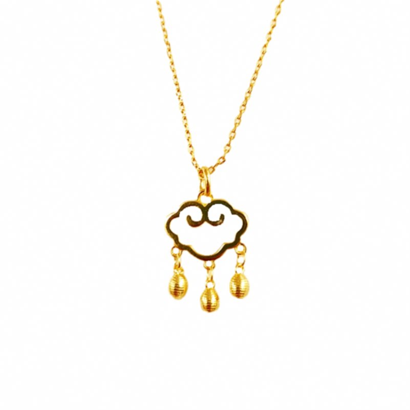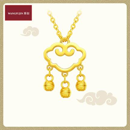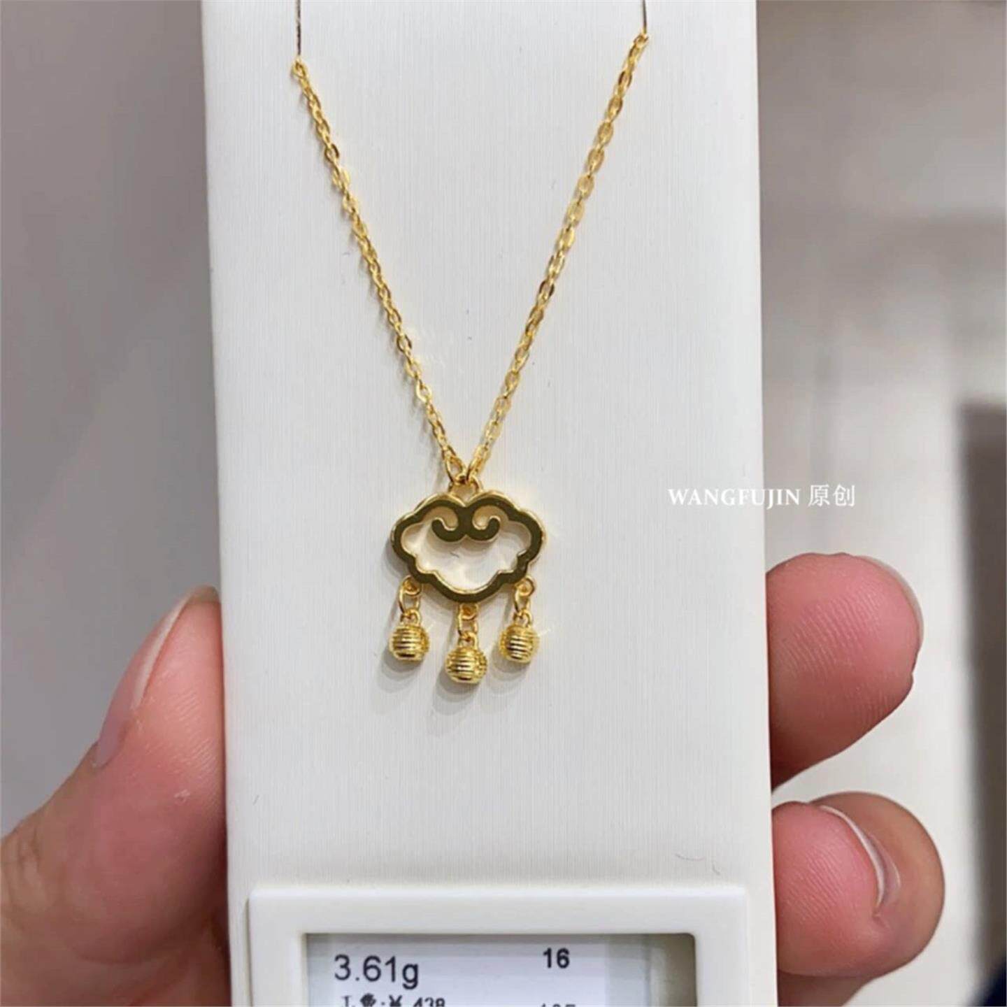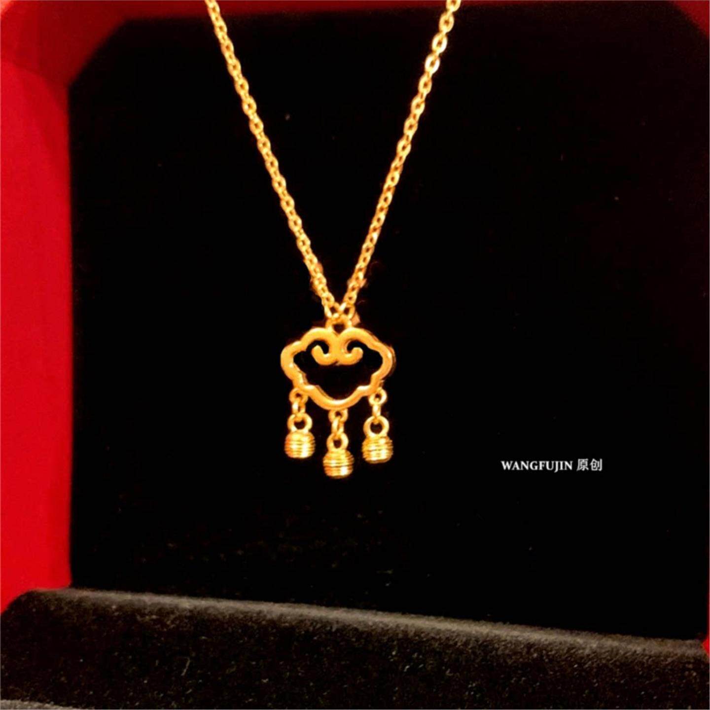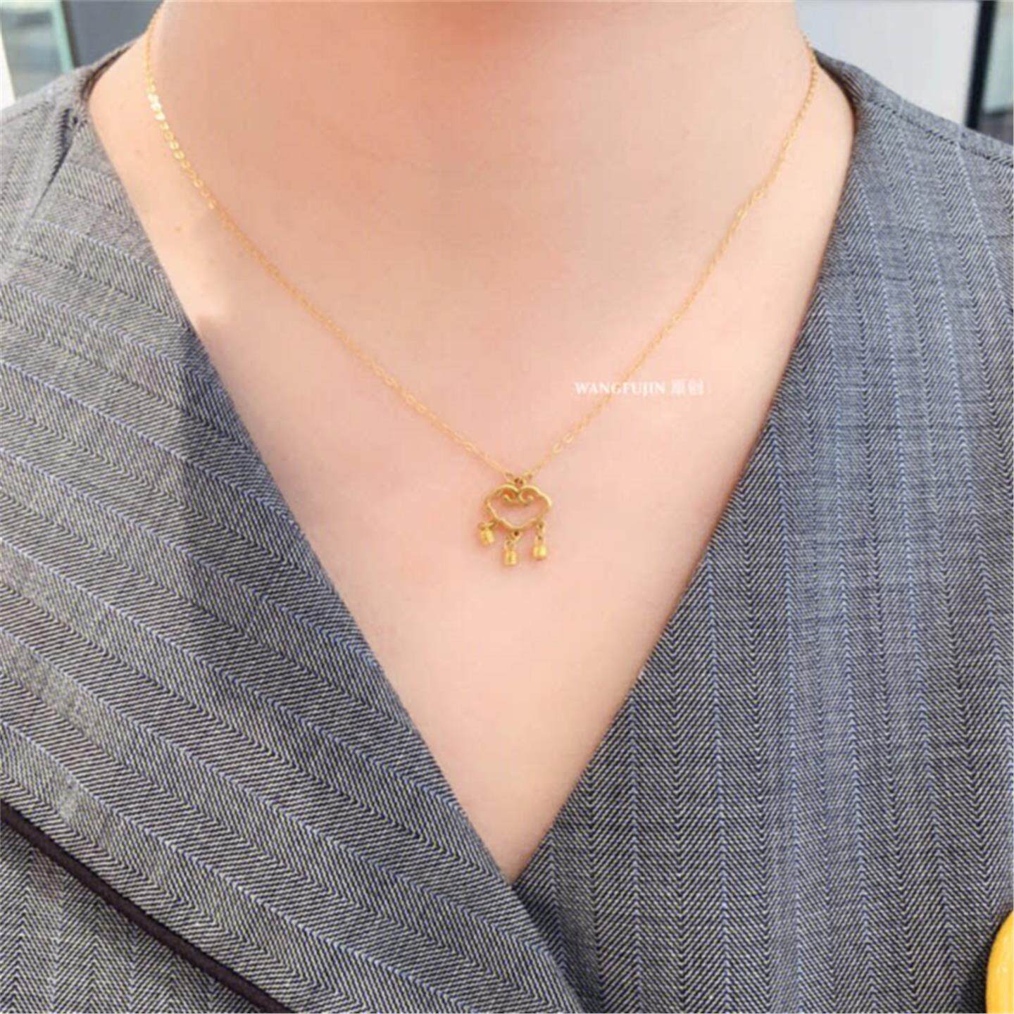 18K金祥云项链 女国潮平安锁宫廷风锁骨链铃铛长命锁纯银圣诞礼物