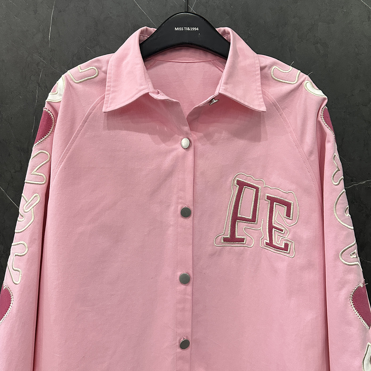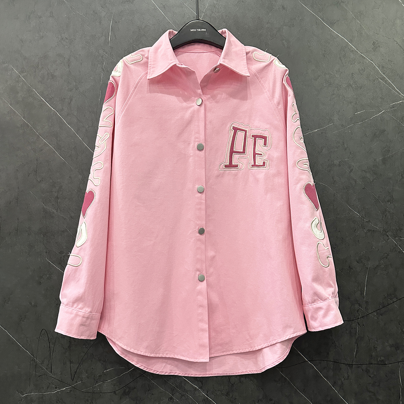 春秋甜美减龄刺绣爱心字母长袖牛仔衬衫外套女宽松休闲中长款上衣