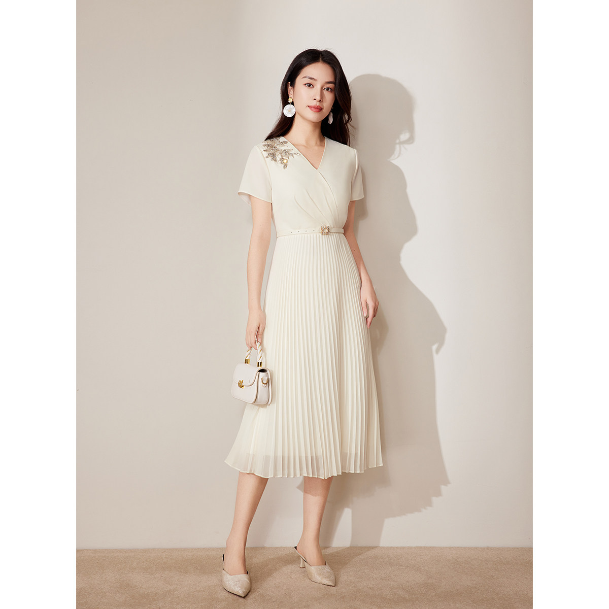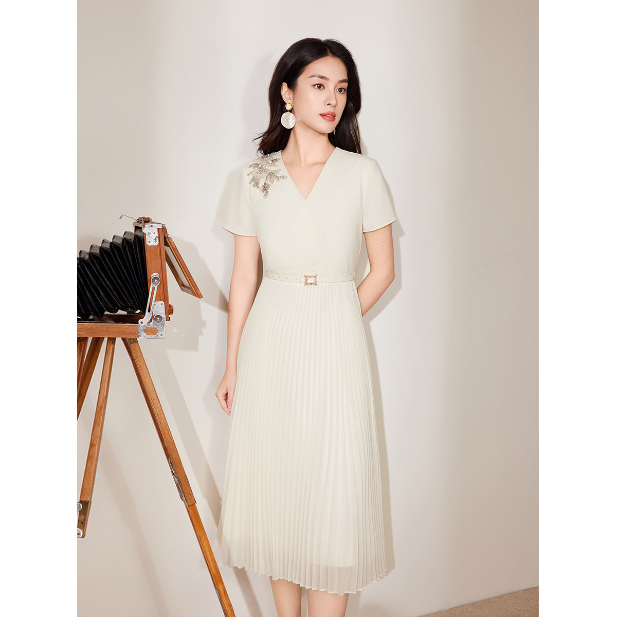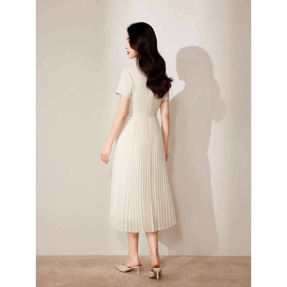 【鎏金之色】BBLLUUEE/粉蓝衣橱2025夏装新款浪漫诗艺压褶连衣裙