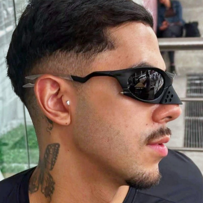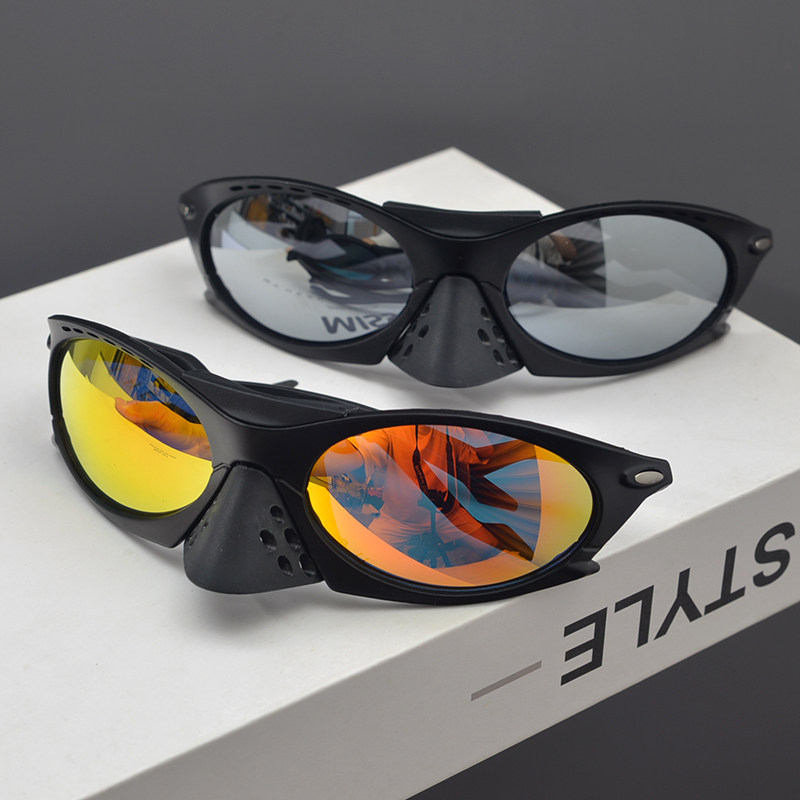 欧美复古大框飞行员式炫彩骑行太阳眼镜男女圆脸嘻哈蹦迪朋克墨镜
