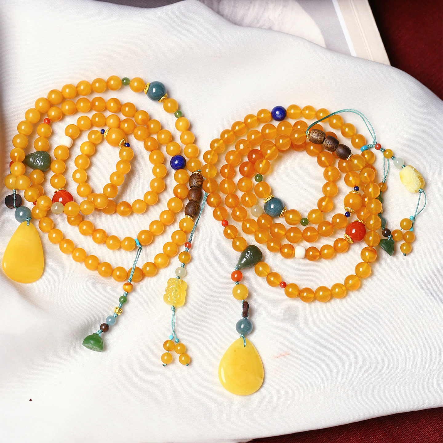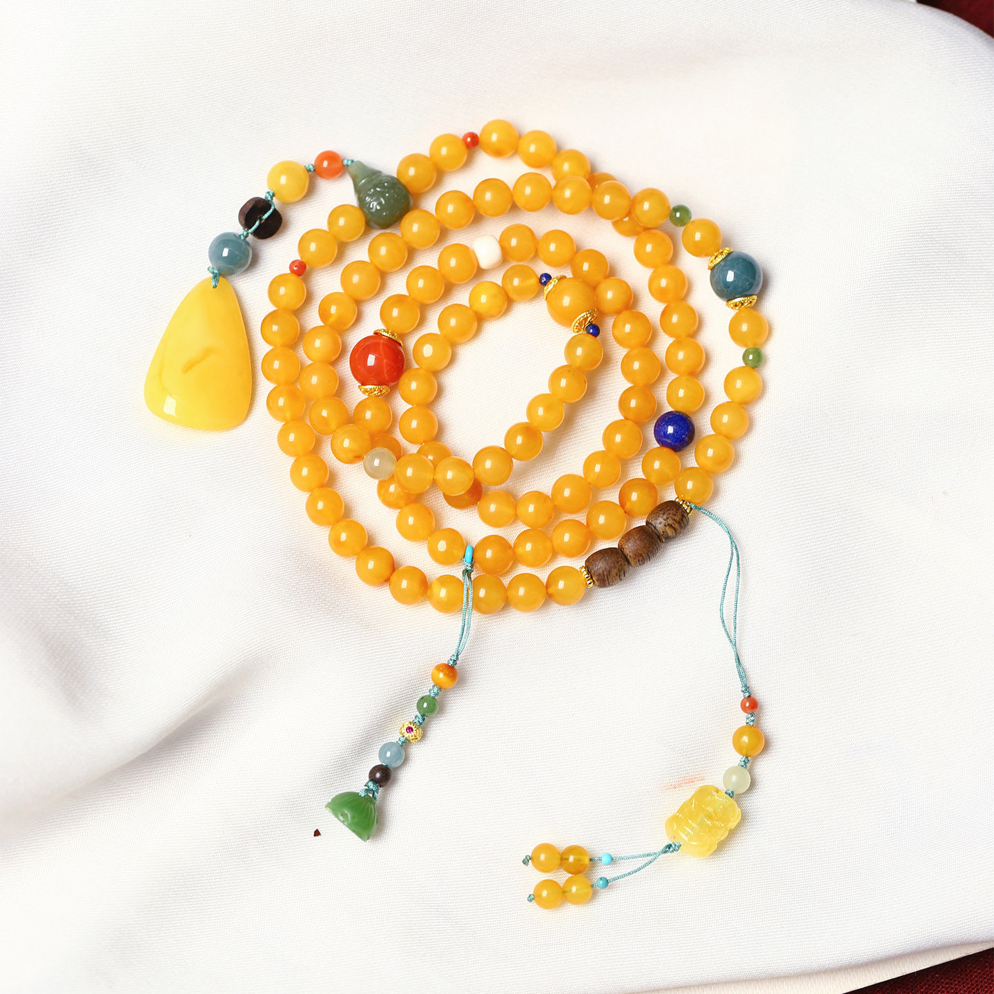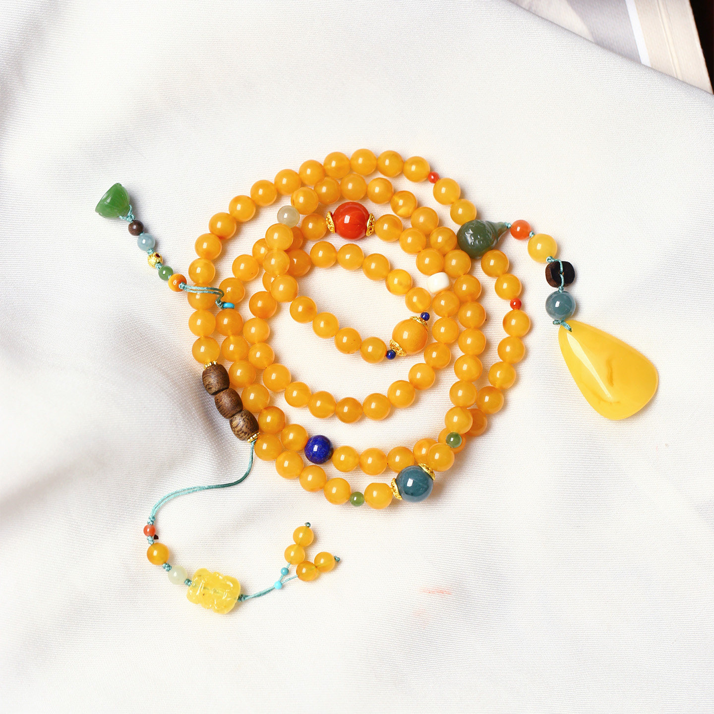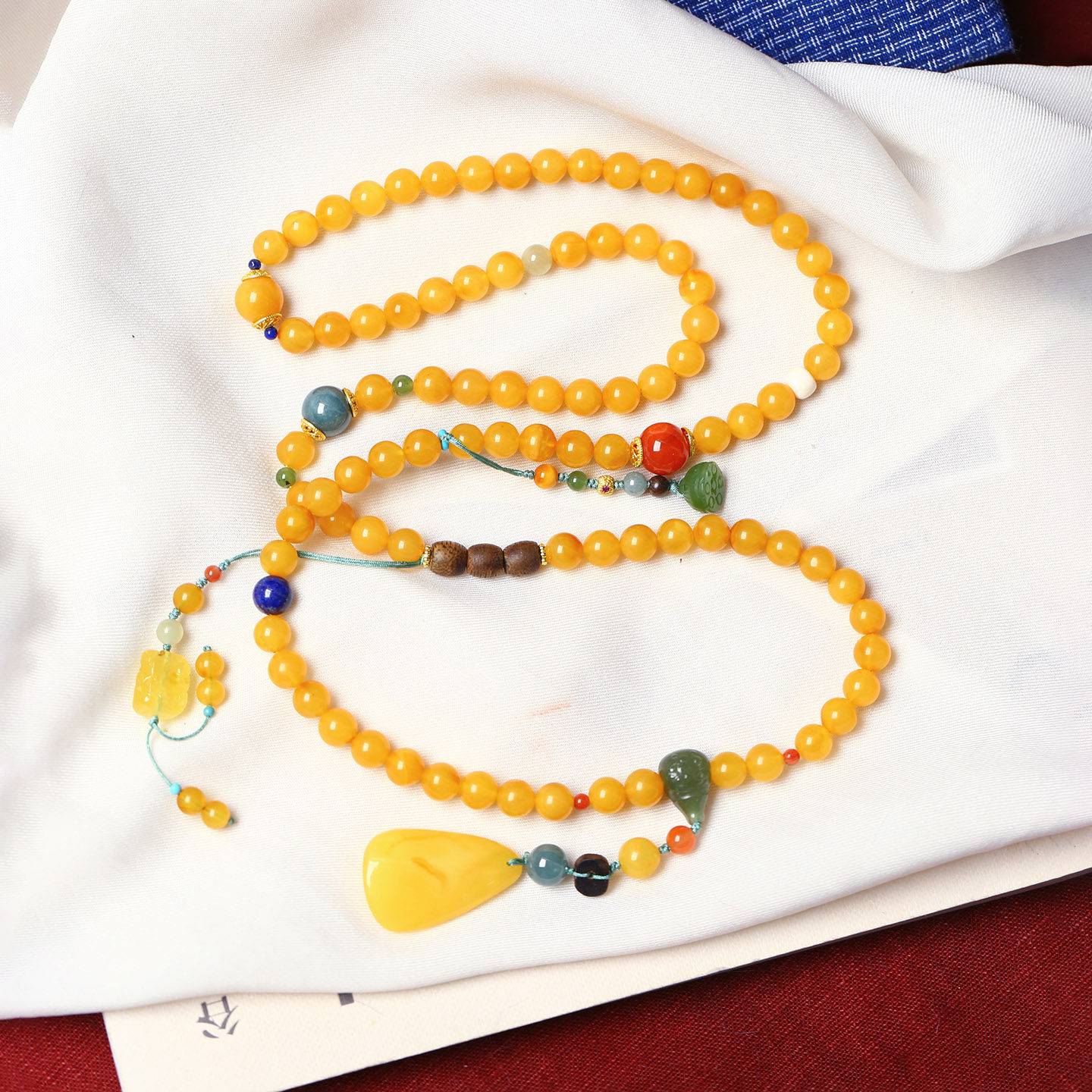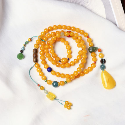 天然老蜜蜡圆珠原创搭配款多圈手链毛衣链 女款琥珀蜜蜡饰品礼物