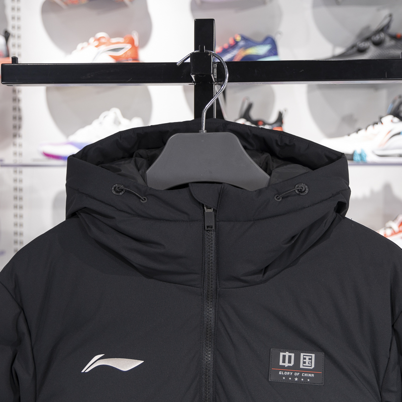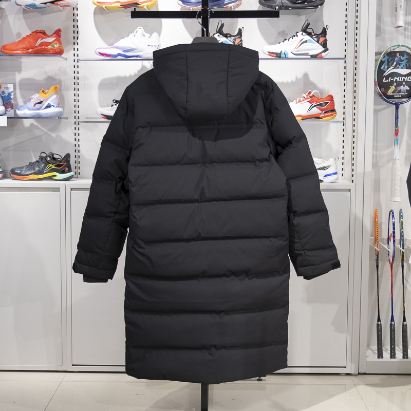李宁保暖连帽长款男子羽绒服