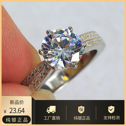 925纯银微镶2克拉经典六爪钻戒仿真女钻石戒指莫桑石结婚戒对戒子