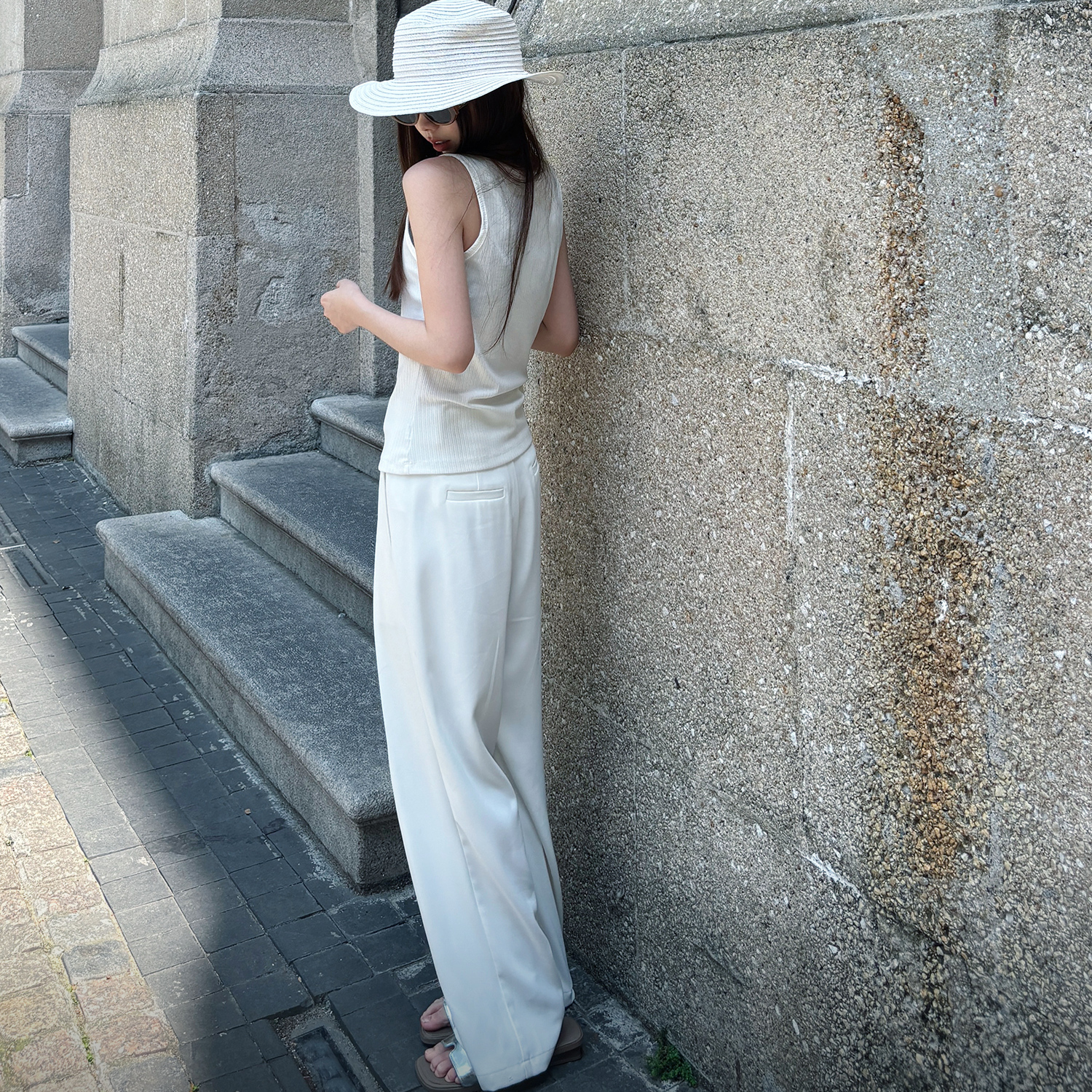 柒量一裁小个子白色休闲高腰西装裤垂感显瘦时尚百搭夏日长裤0225