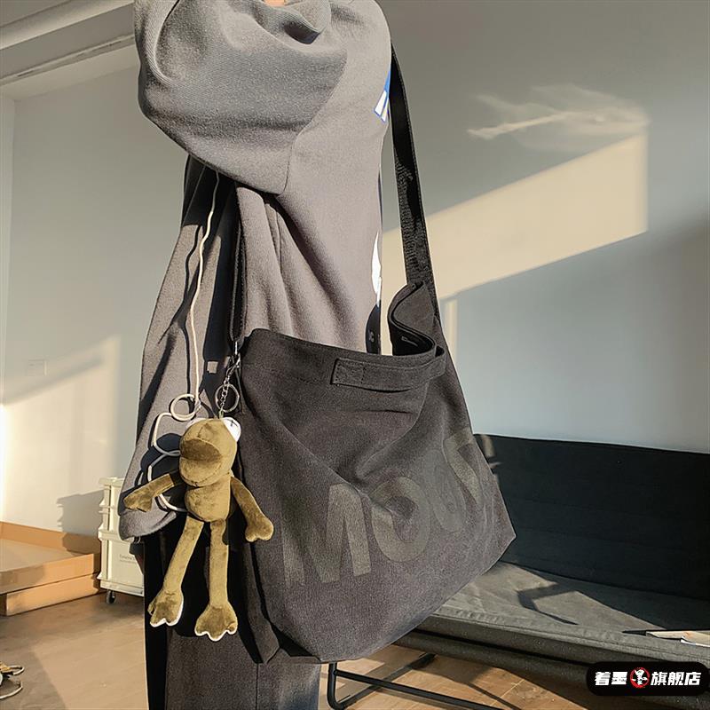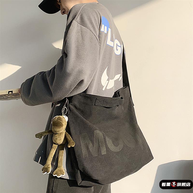 大容量单肩斜挎帆布包男日系男生背包女休闲邮差学生男士休闲通勤
