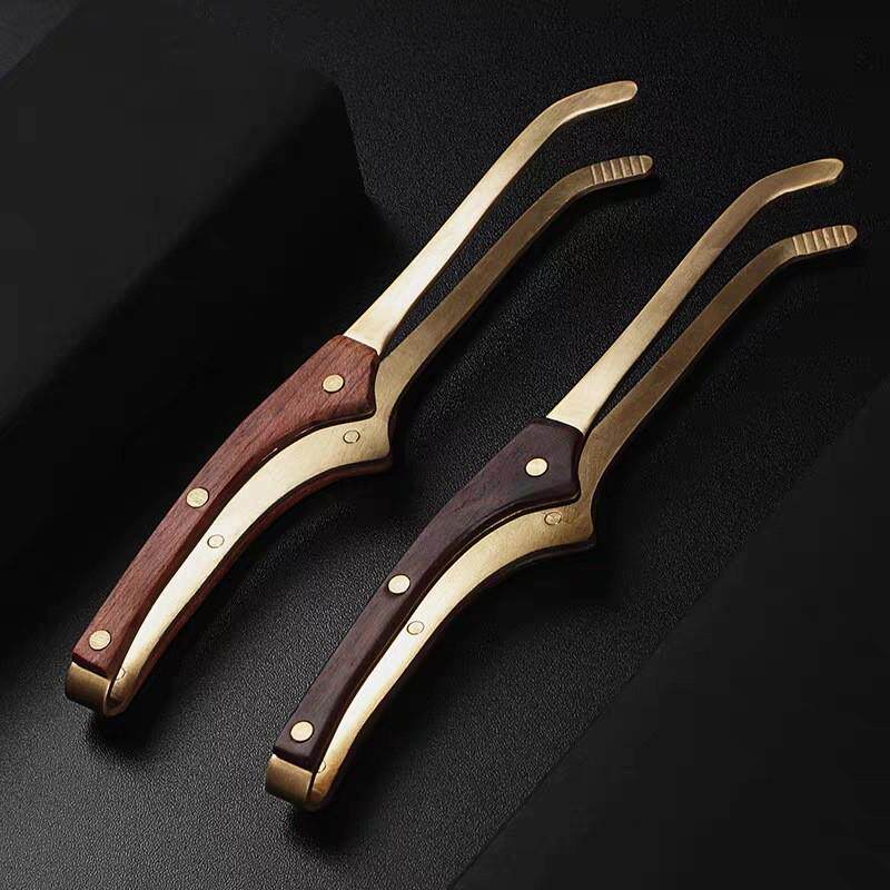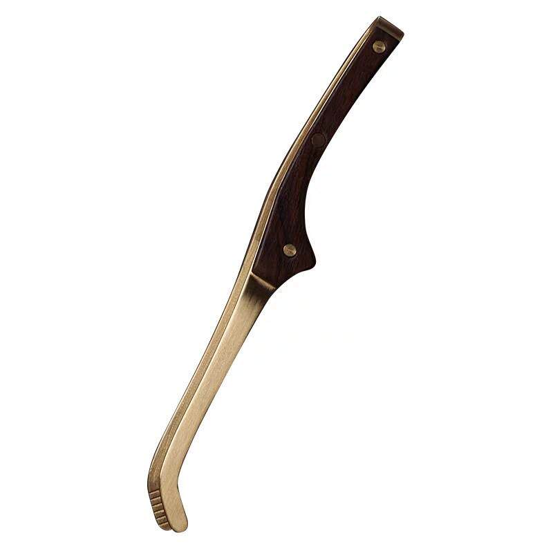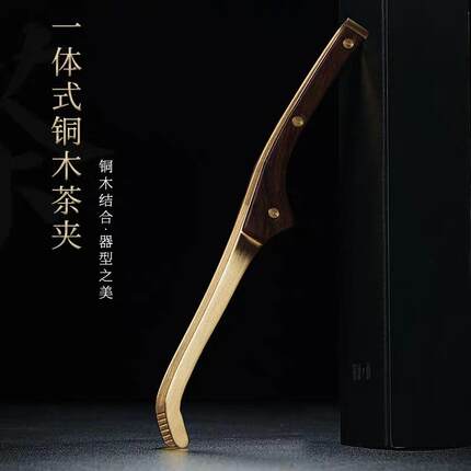 防滑镊子茶家用纯铜茶具夹功夫茶叶茶盘配件黑檀木茶杯金属实木