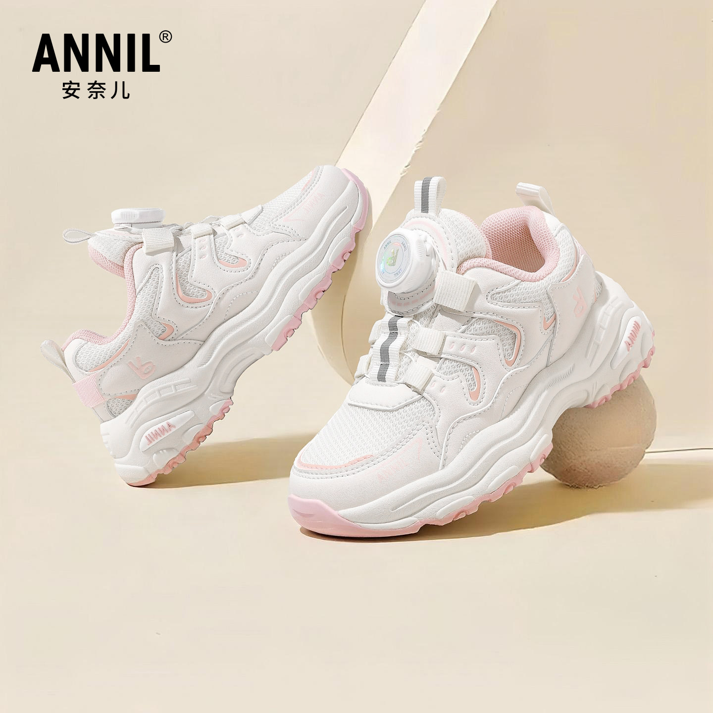 安奈儿女童运动鞋2026新款春季轻便软底跑步女孩老爹鞋儿童小白鞋