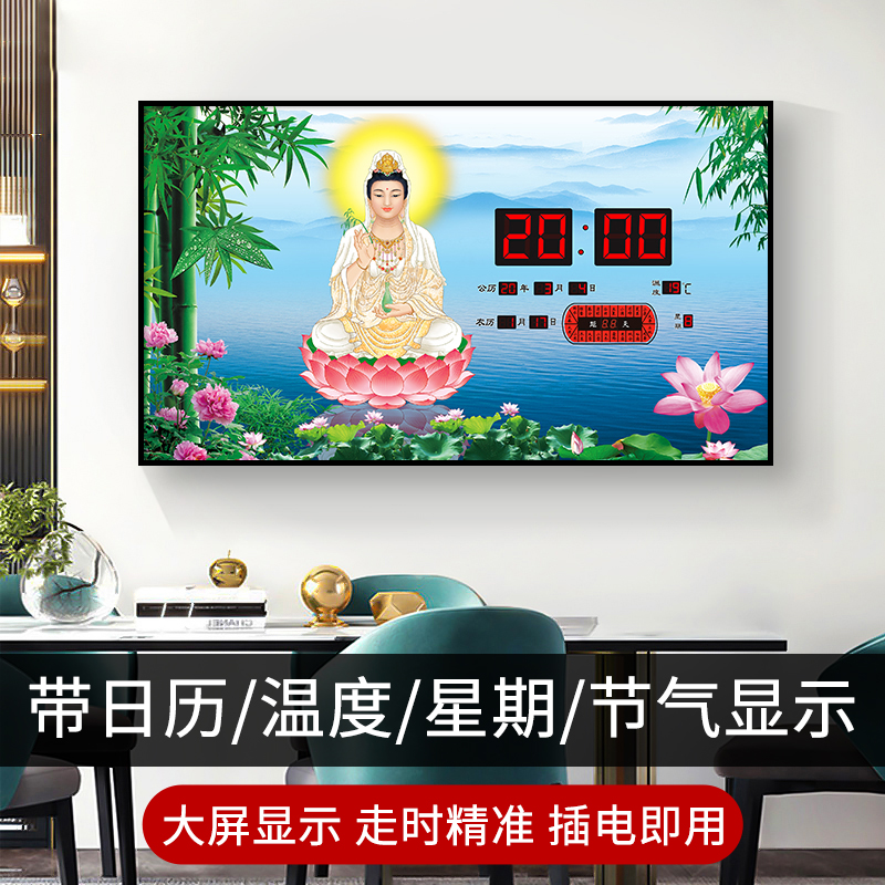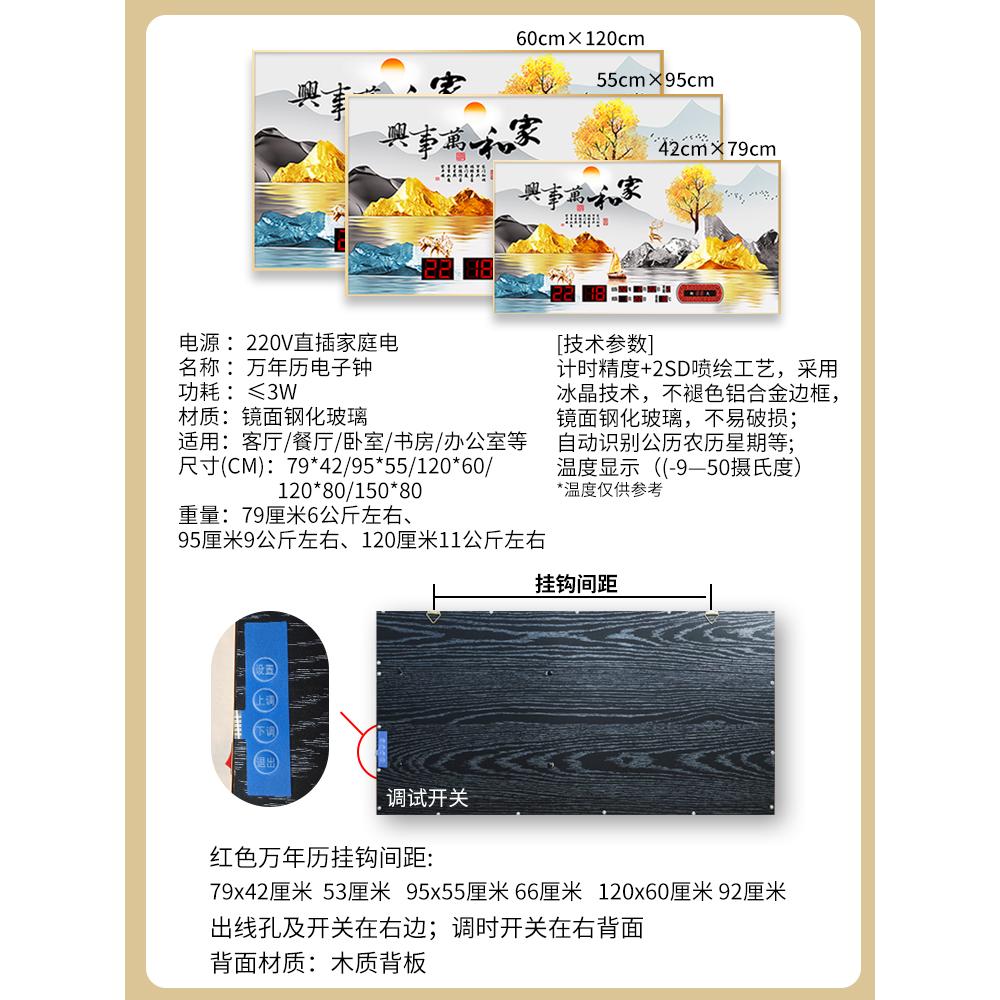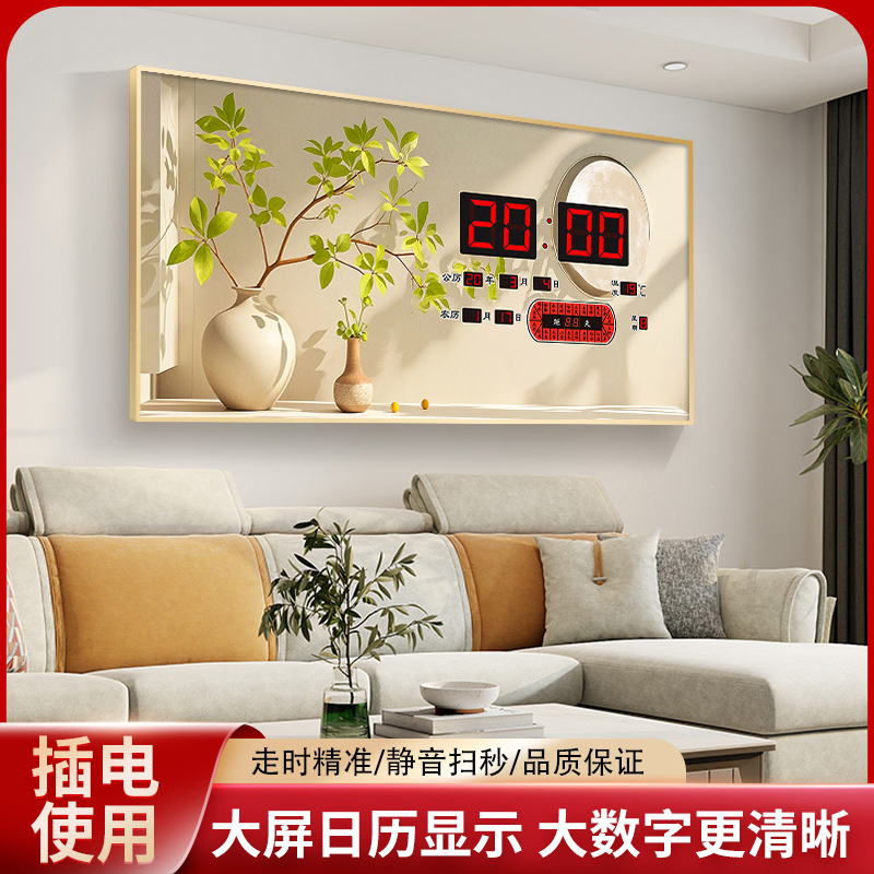 绿植欣欣向荣风景画电子万年历挂钟客厅轻奢新中式日历装饰画时钟
