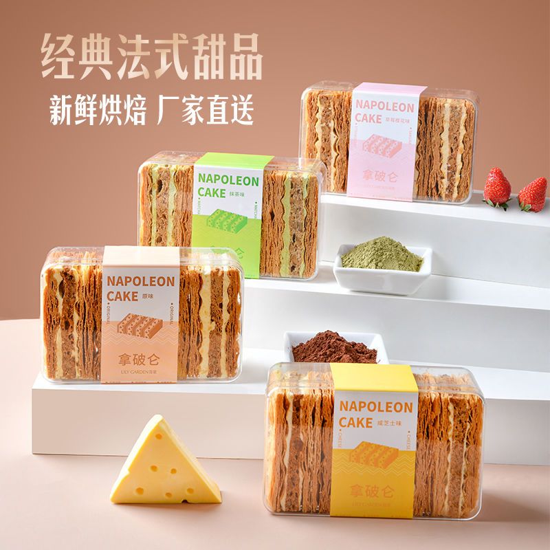 荷家 新款拿破仑蛋糕 160g*3盒 抹茶芝士味糕点甜品下午茶千层酥