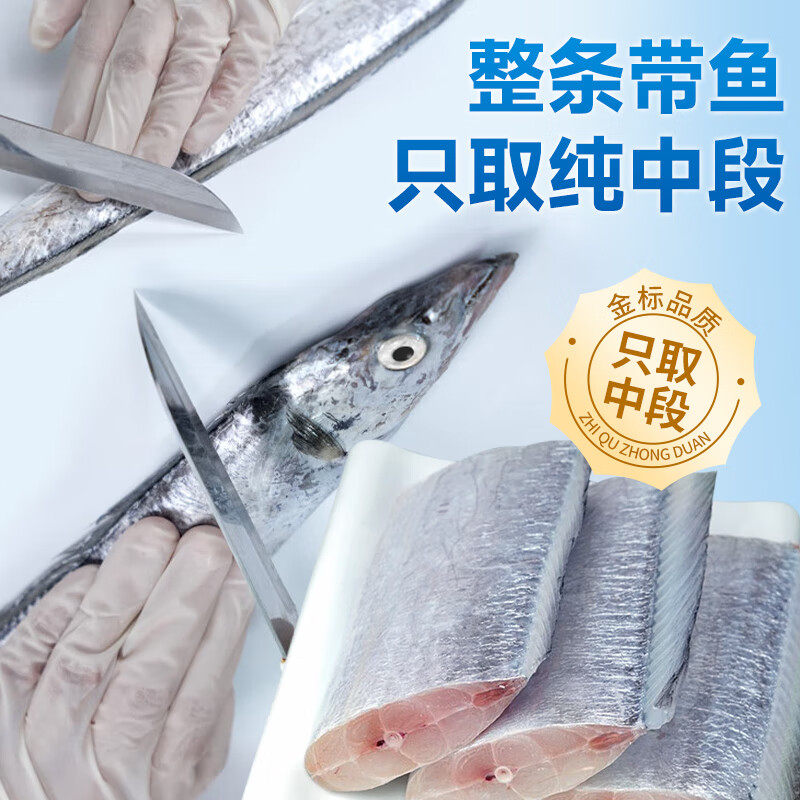 带鱼段新鲜冷冻刀鱼段四指宽纯中段无冰特级大号海捕舟山小眼带鱼